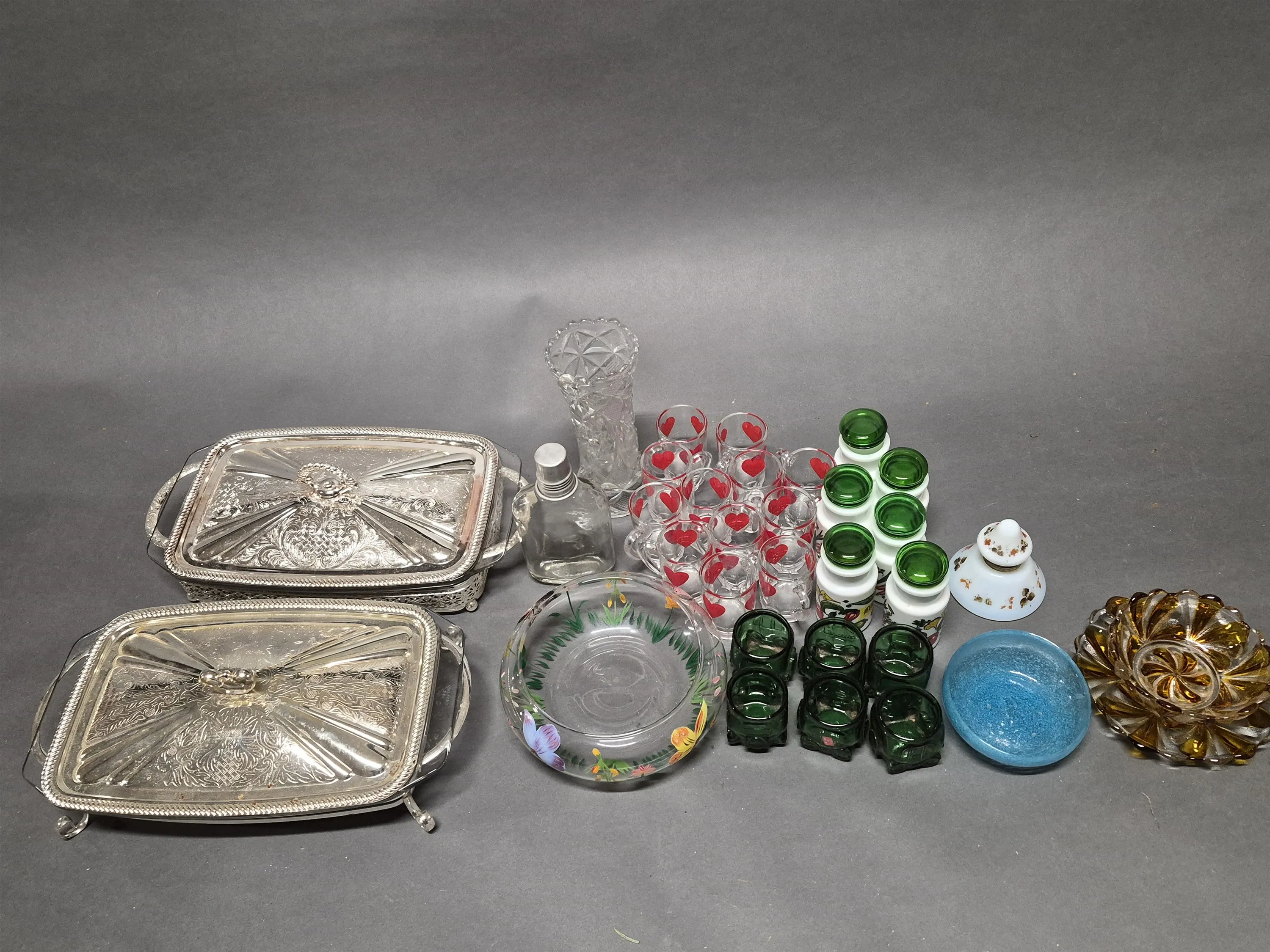 18072. Parti glas bl.a ugnsformar med lock, glöggmuggar längsta 32 cm