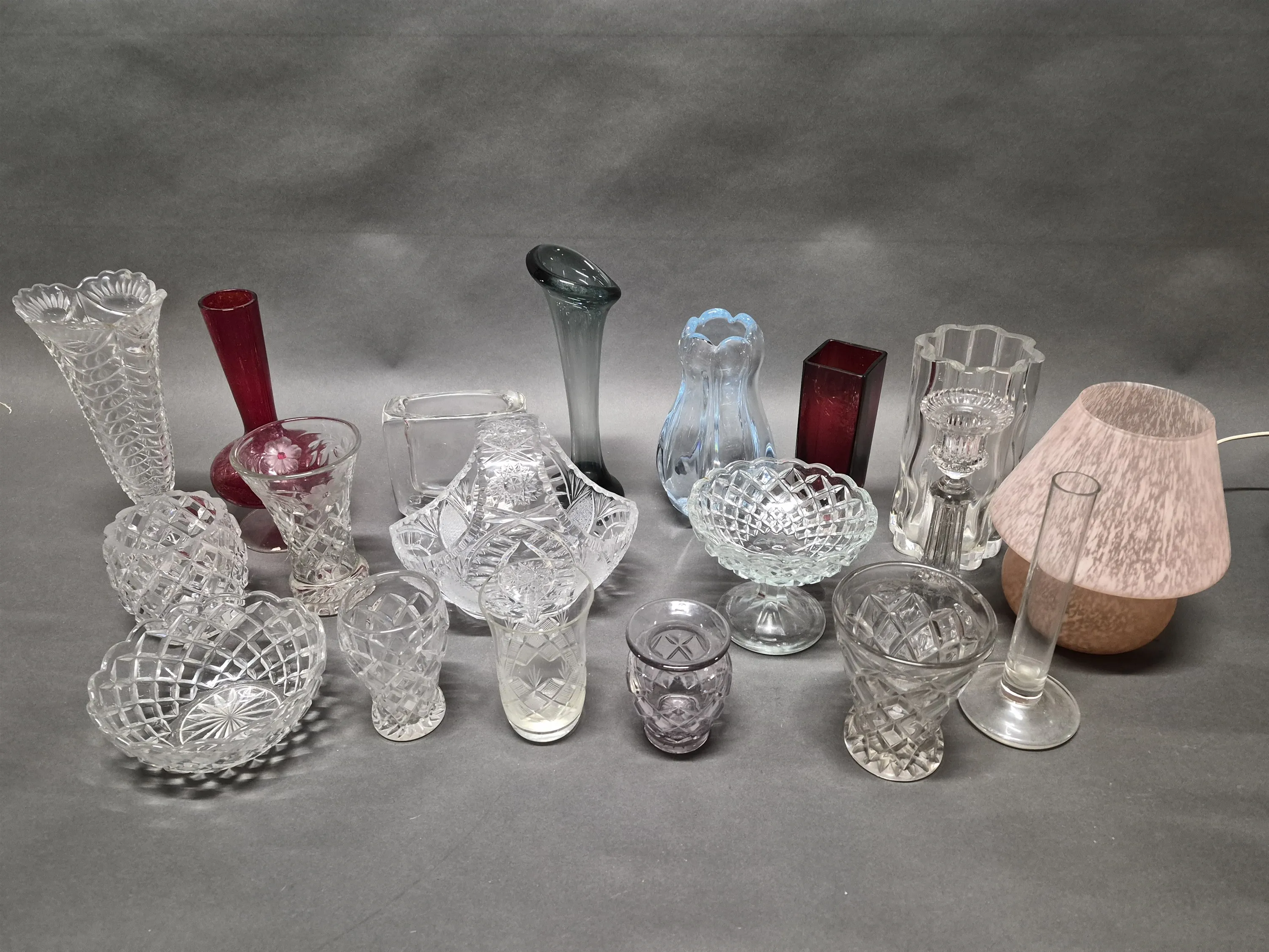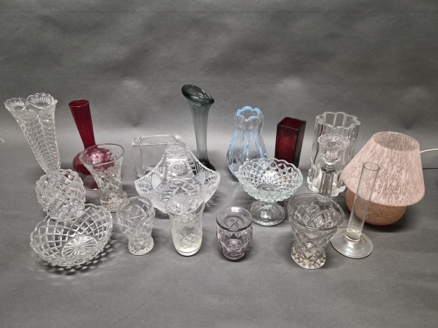 17337. Parti glas bl.a vaser & lampa Lamp Gustav högsta 27 cm