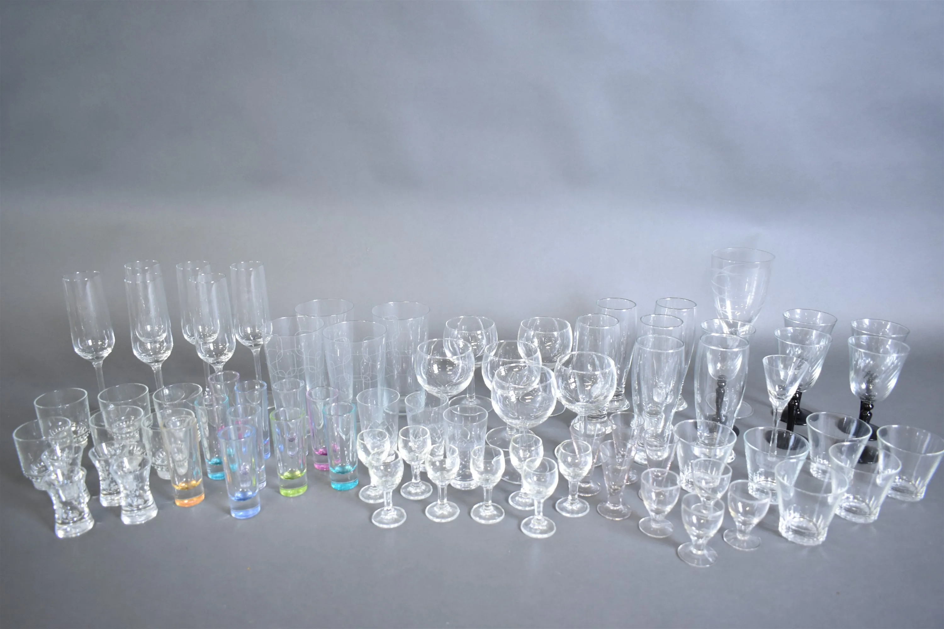 14048. Parti glas bla champagneglas och snapsglas, högsta höjd 25 cm
