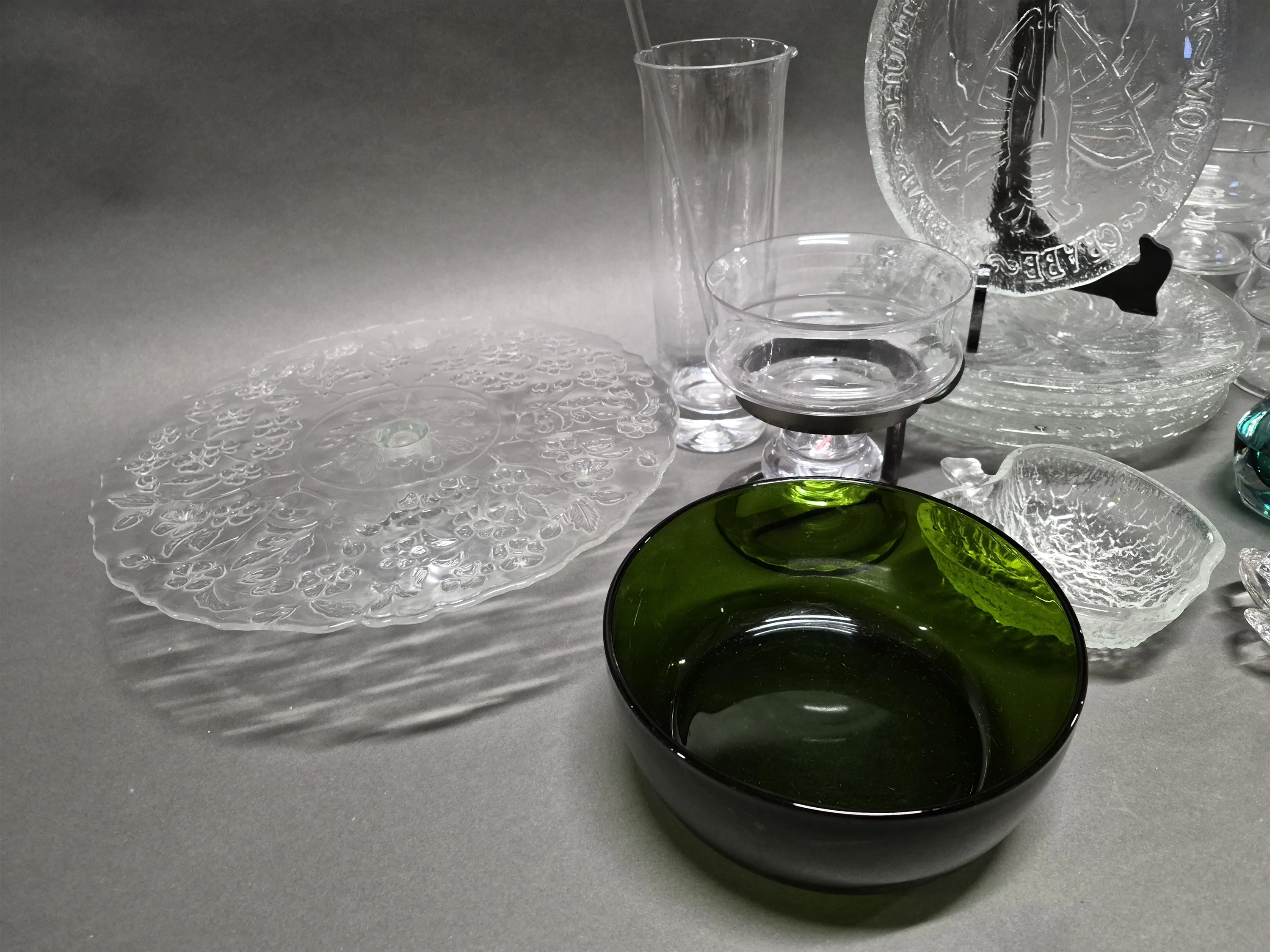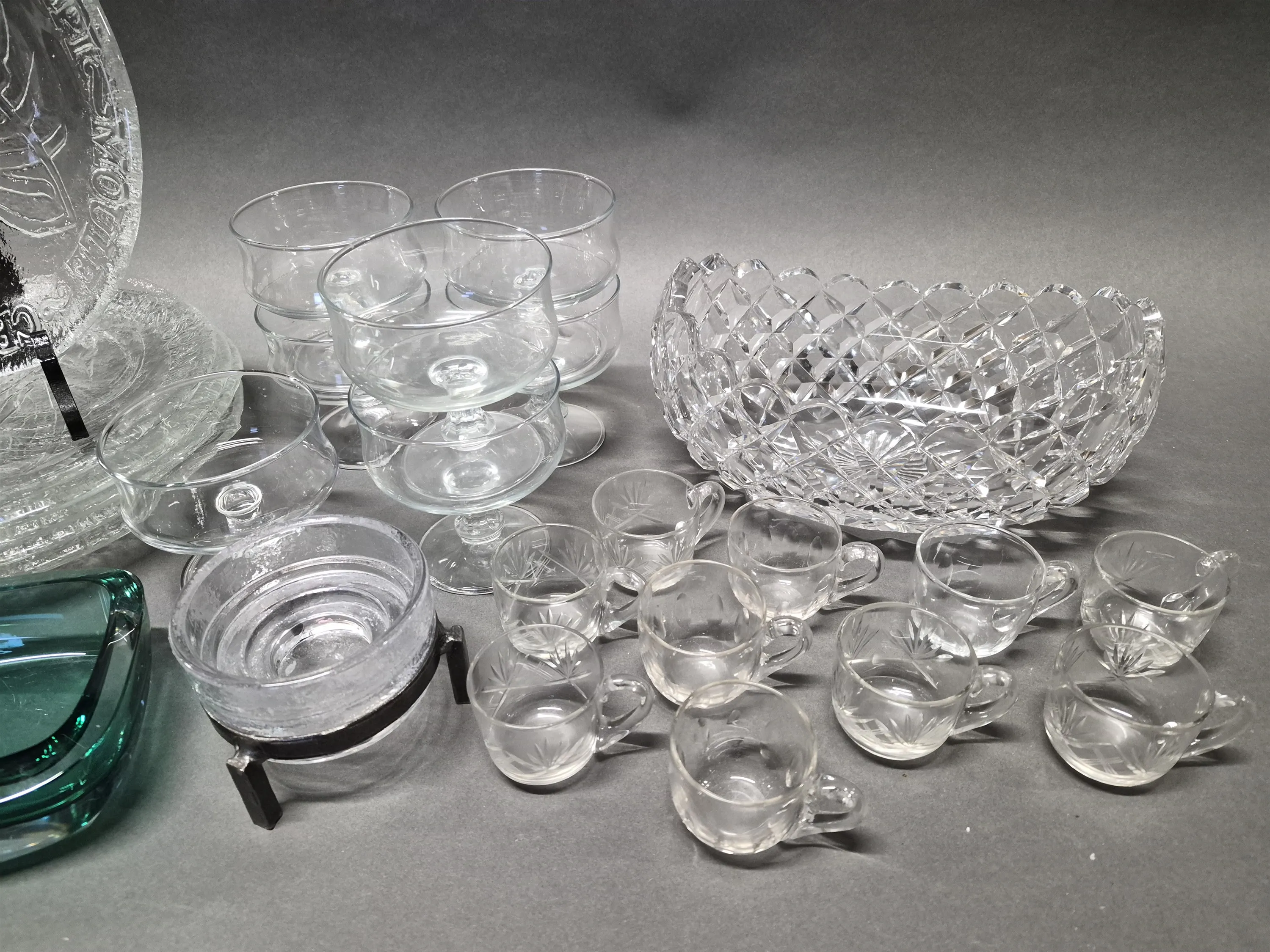 18991. Parti glas bla dessertskålar, fat och skålar, största diameter 26 cm