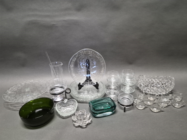 18991. Parti glas bla dessertskålar, fat och skålar, största diameter 26 cm