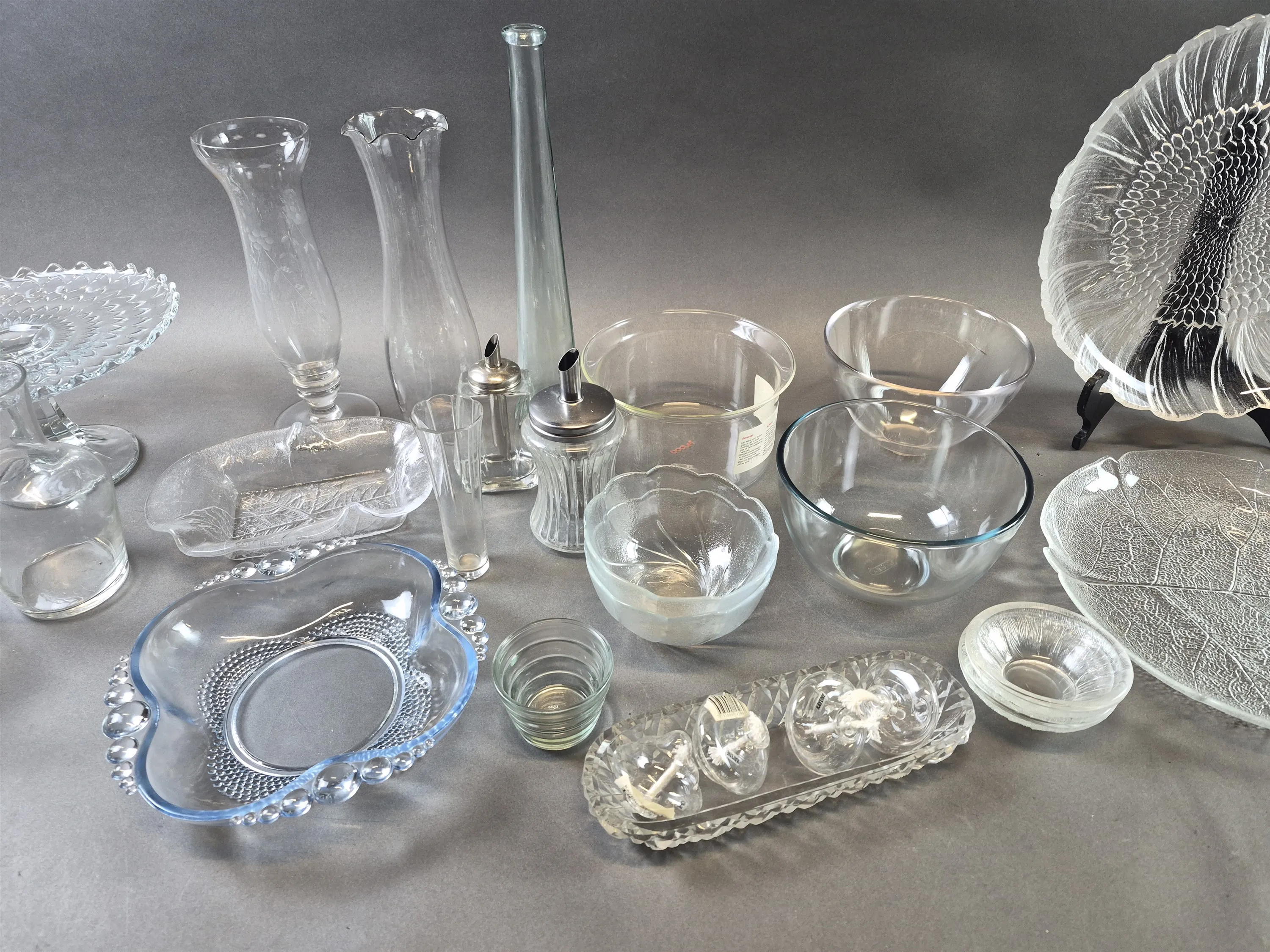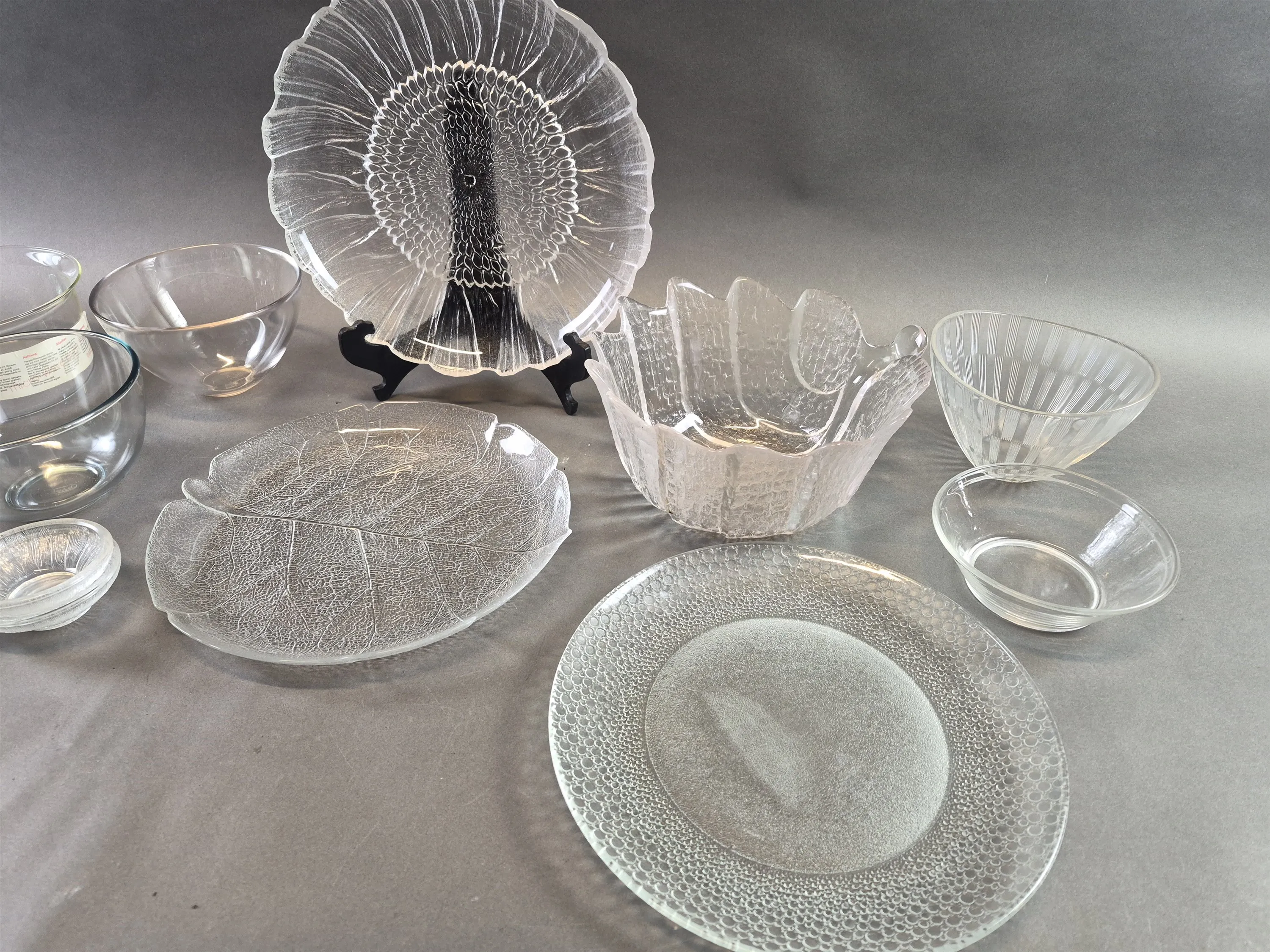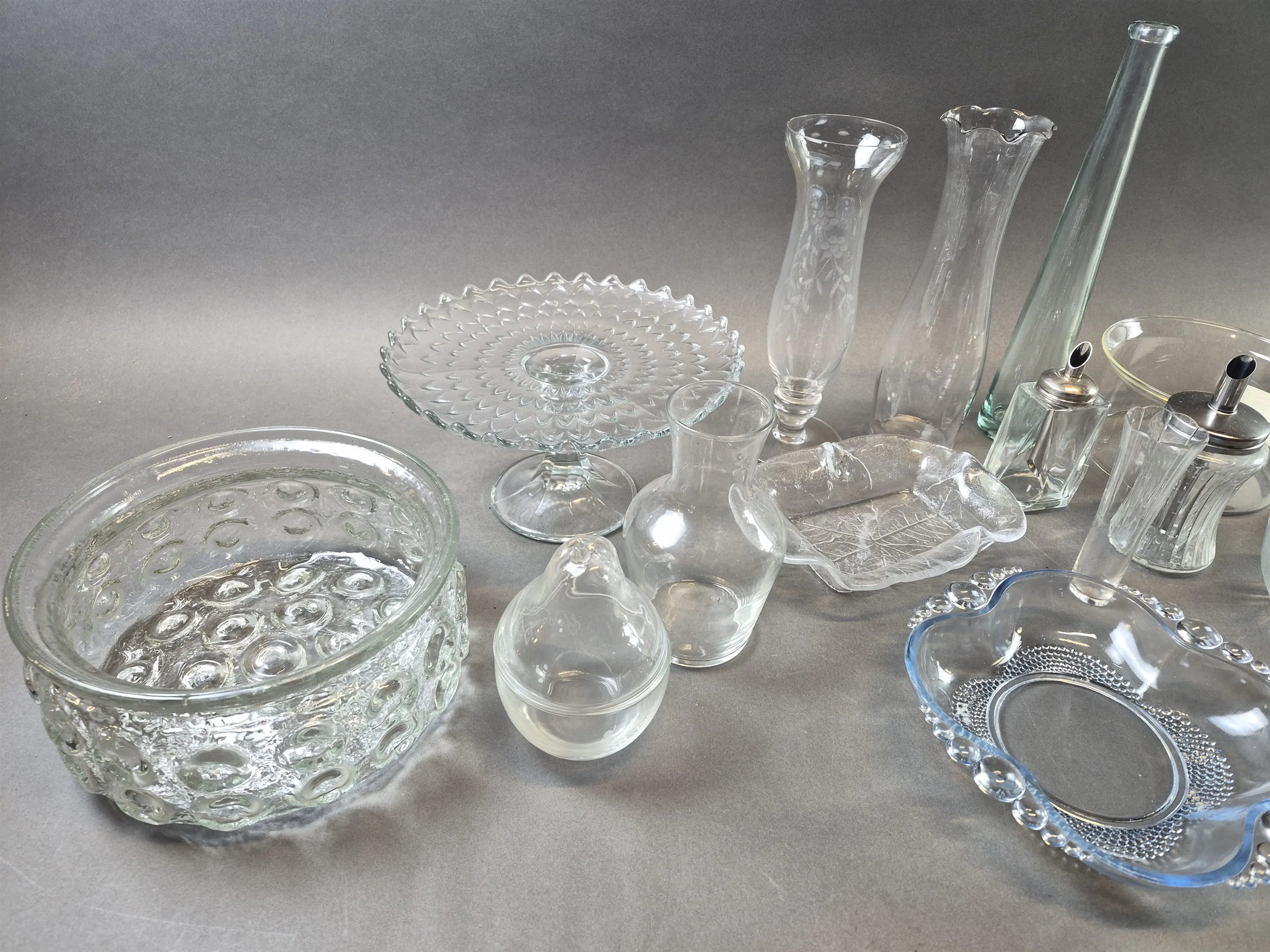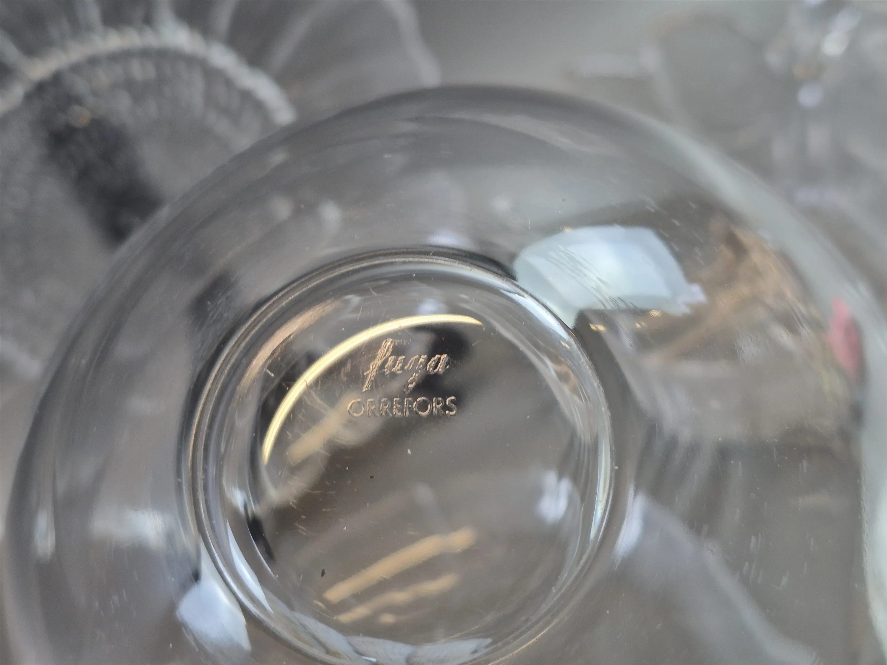 20977. Parti glas bla fat Kosta Boda och skål Orrefors "Fuga", högsta höjd 33 cm