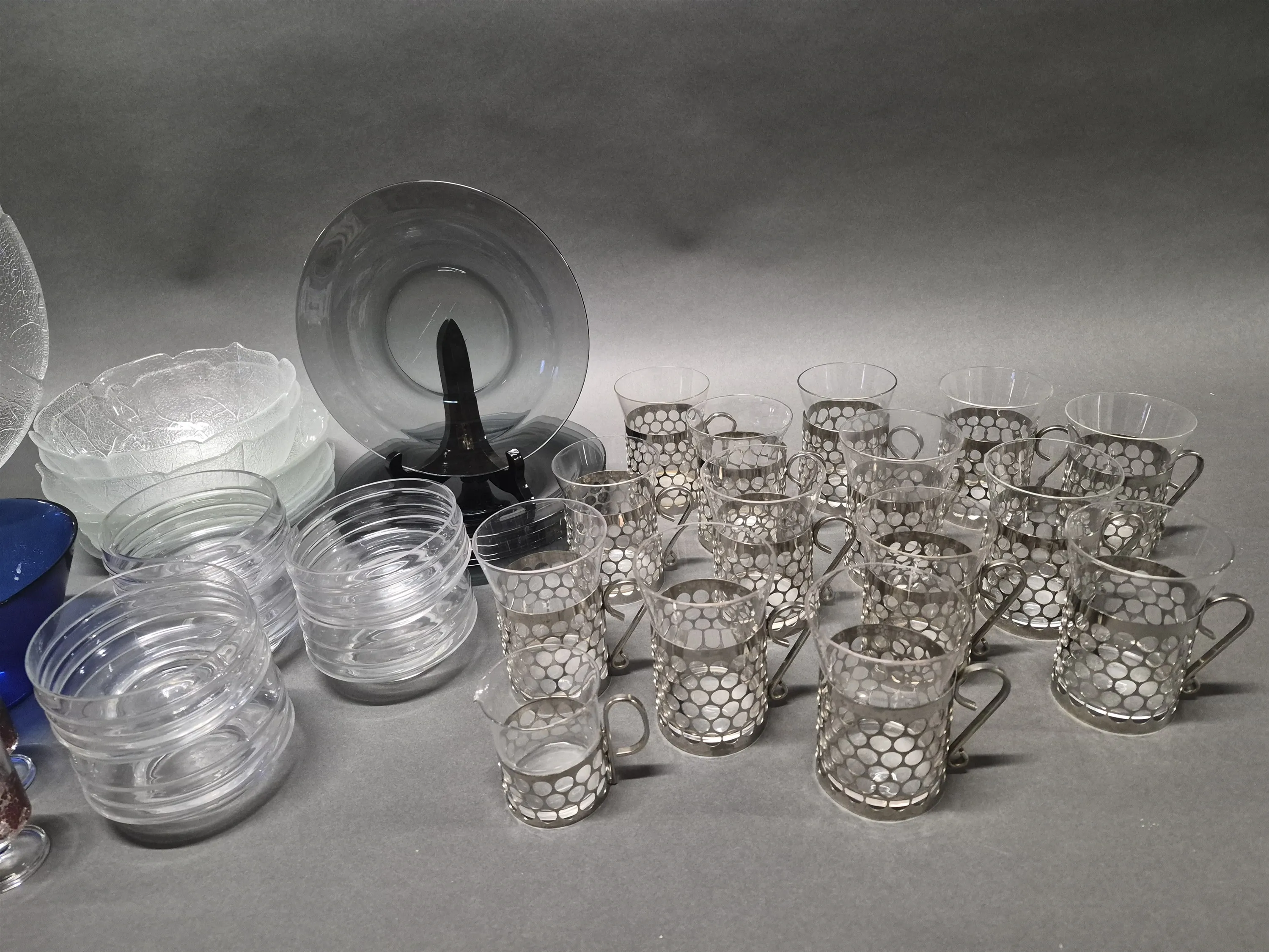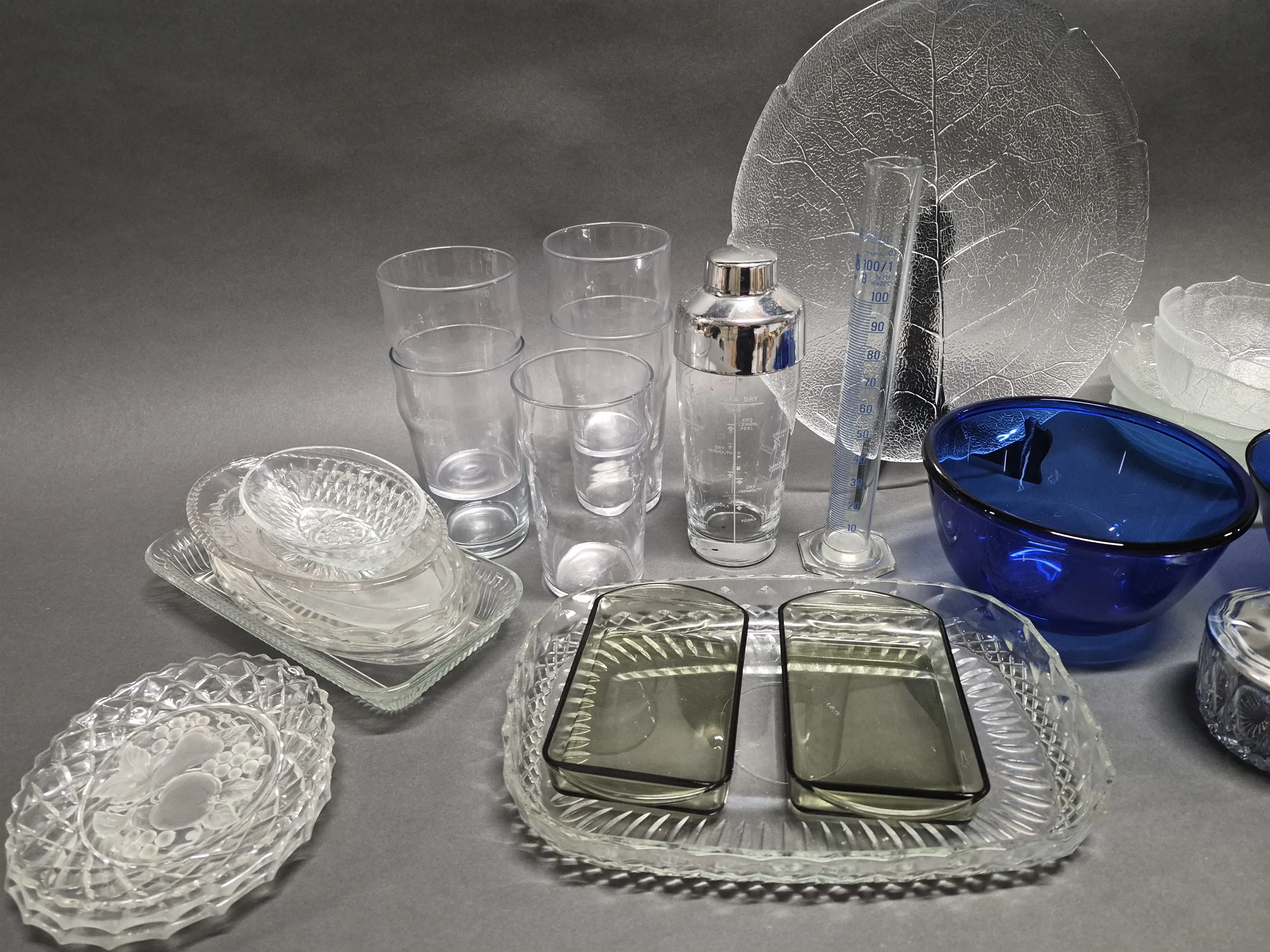 18896. Parti glas bla fat, skålar och irish coffee muggar, största diameter 33 cm