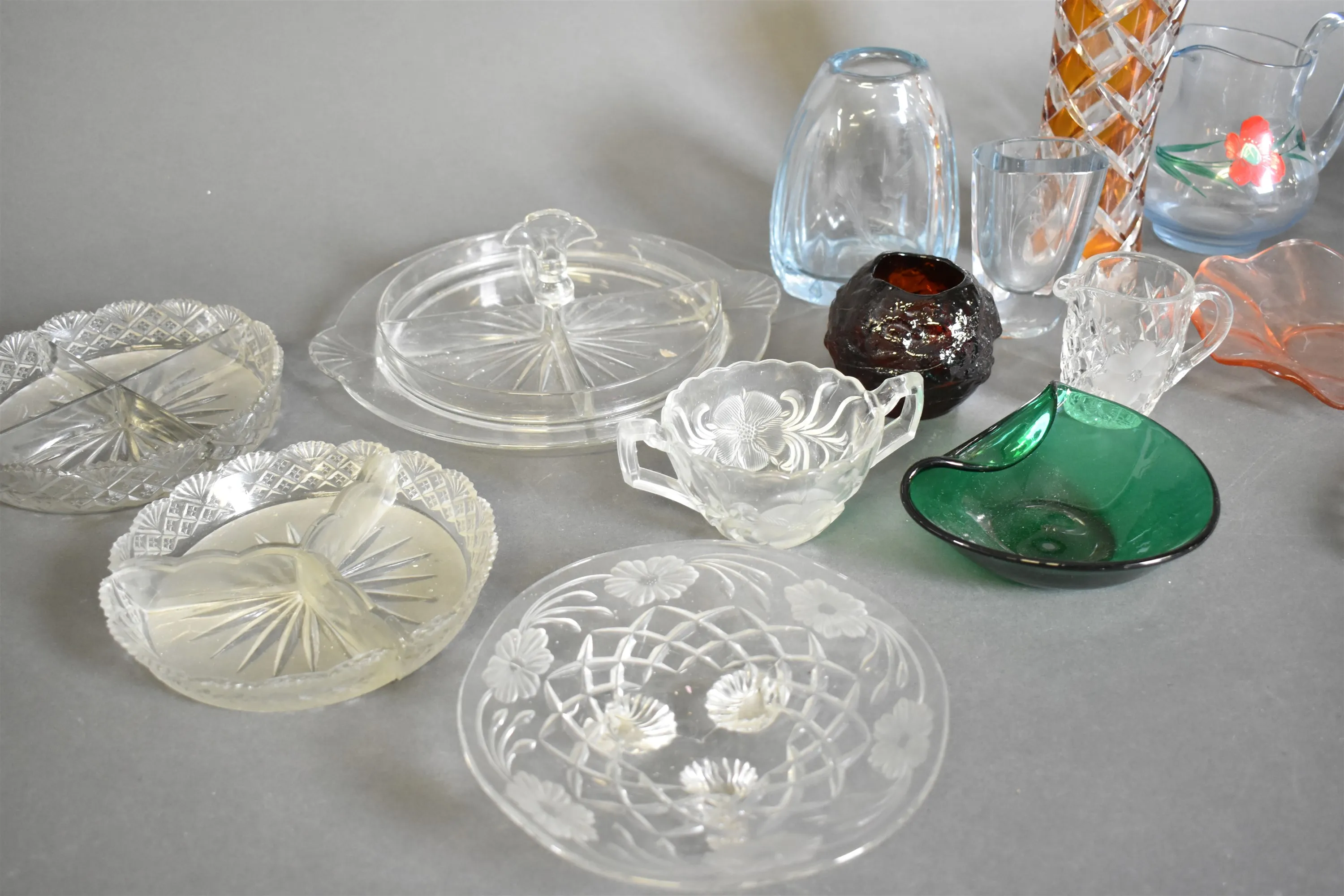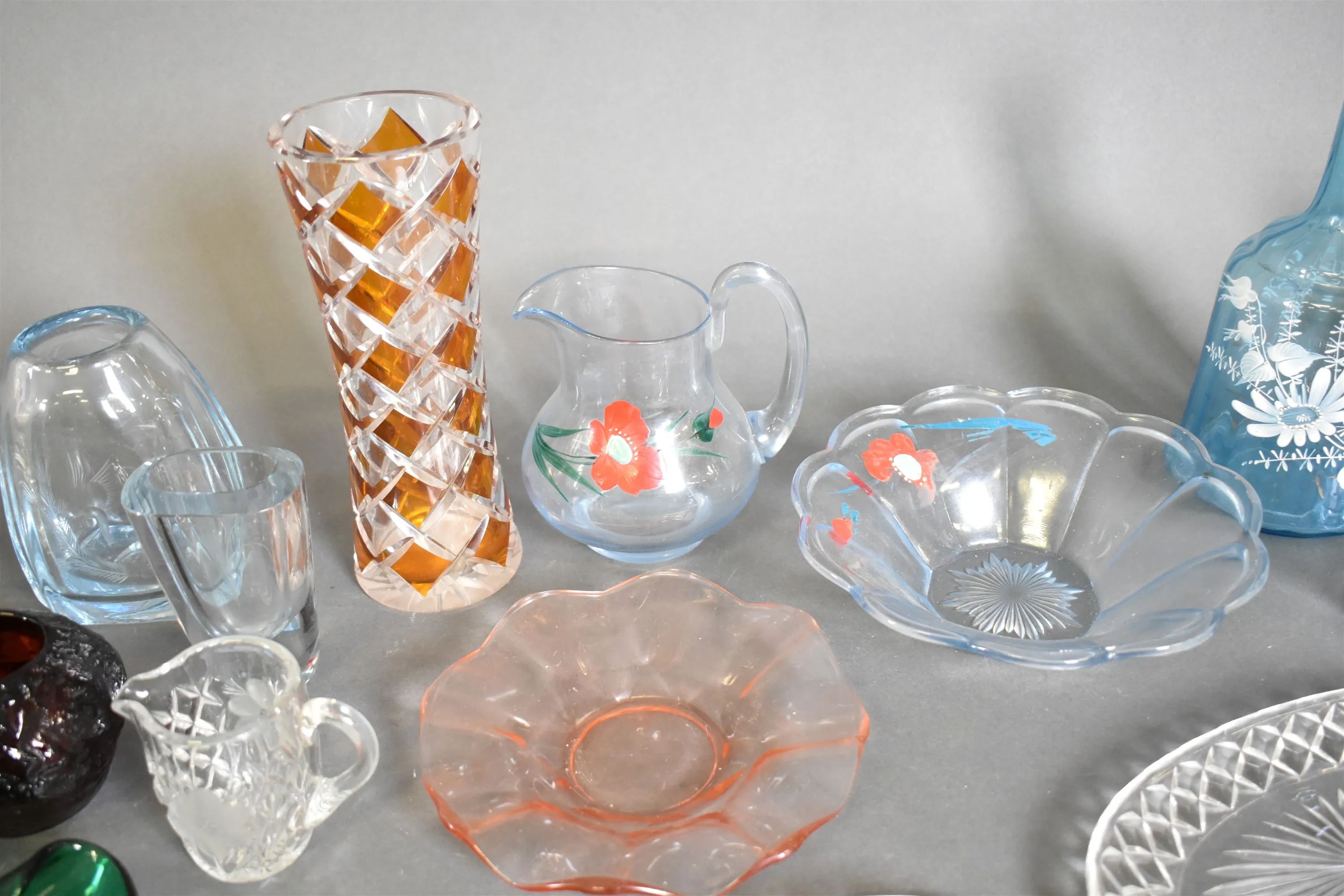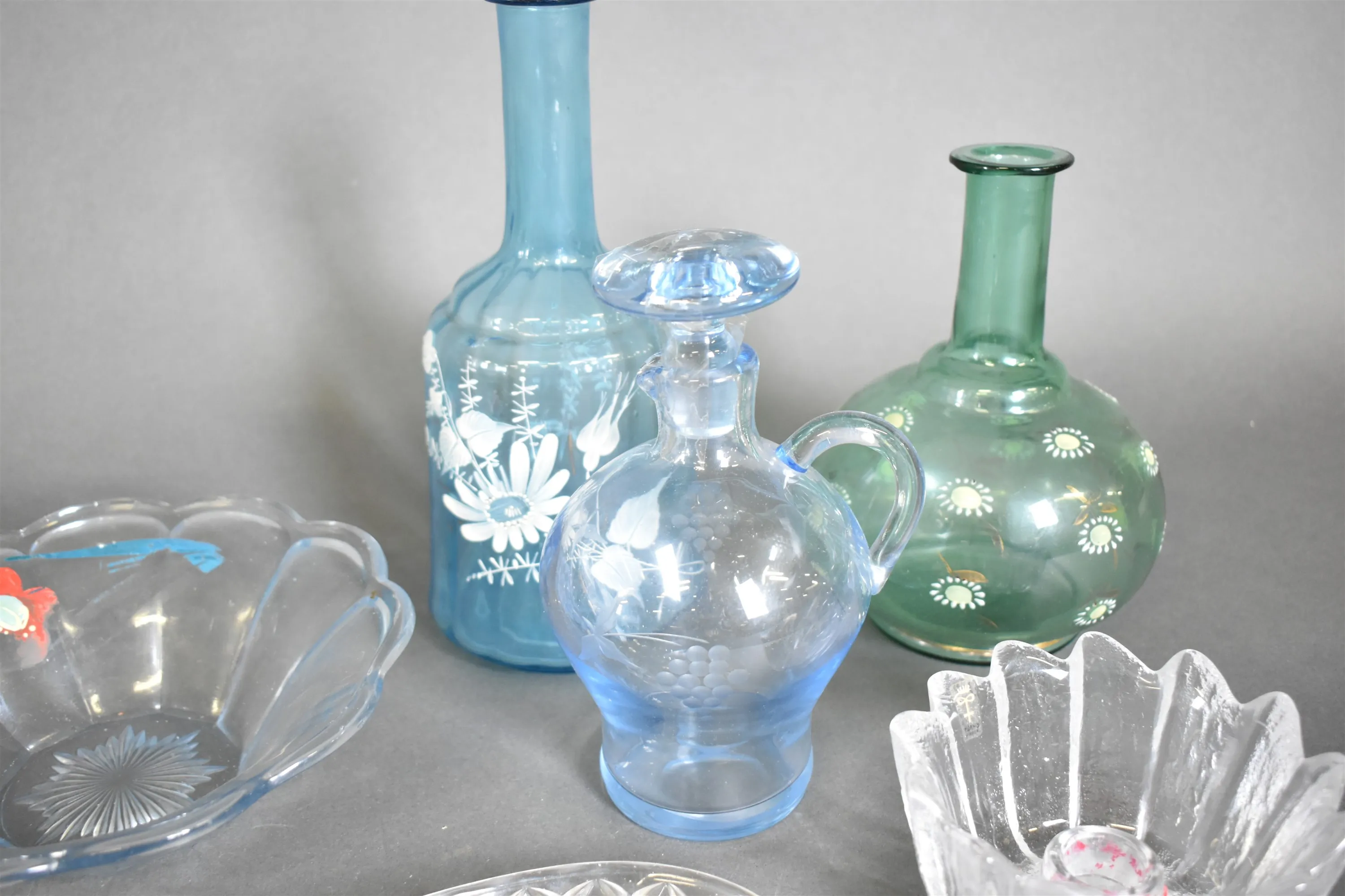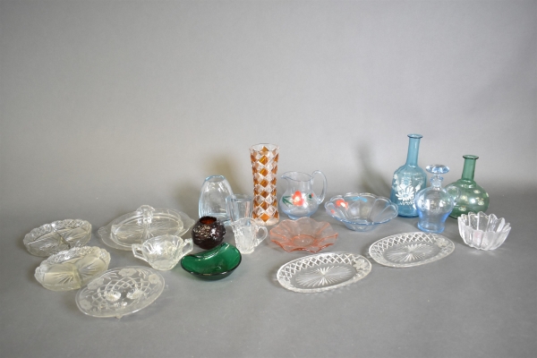 11418. Parti glas bla karaffer och vaser, högsta höjd 23 cm