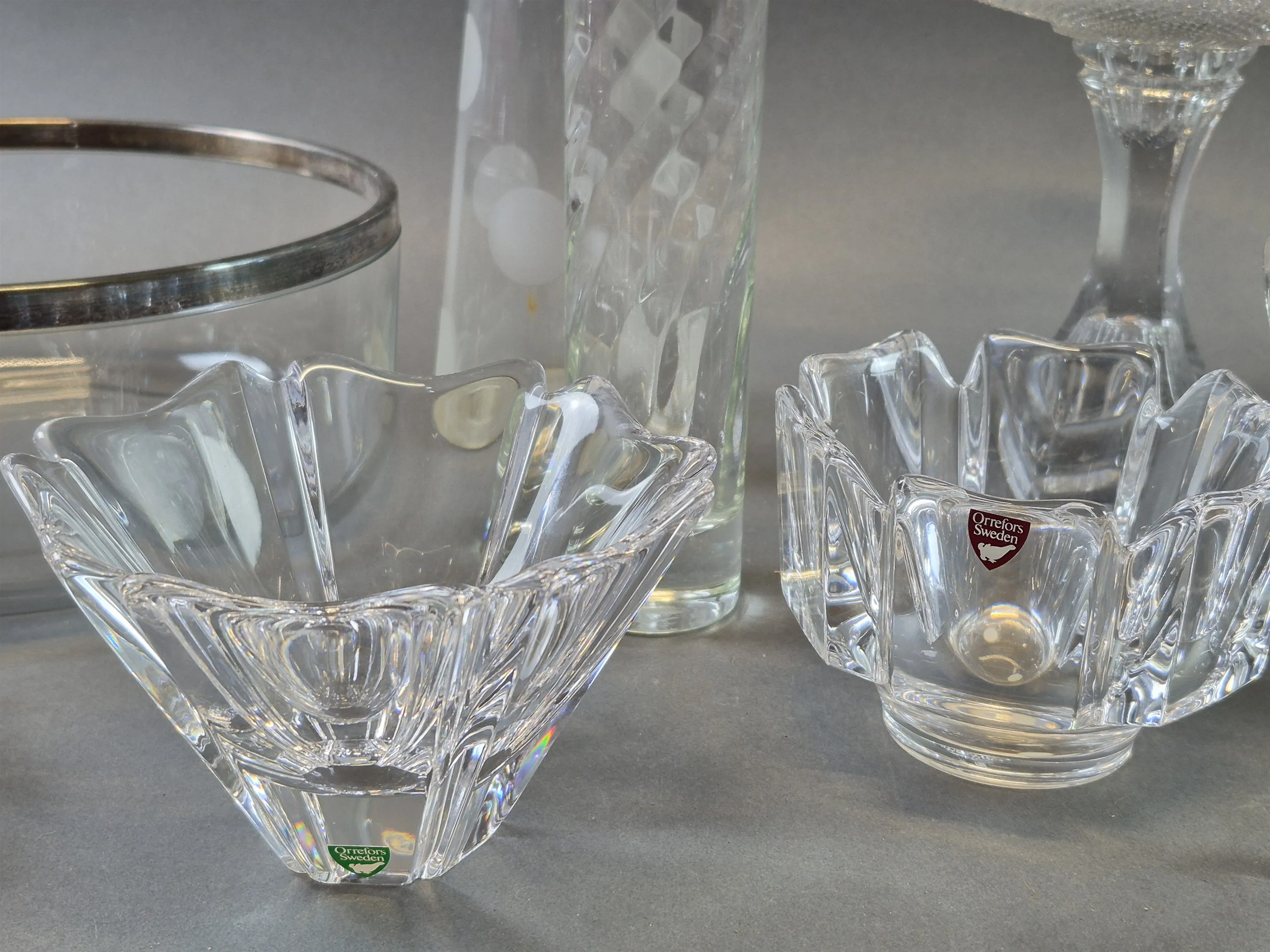 20889. Parti glas bla Orrefors, nagg förekommer, högsta höjd 38 cm