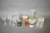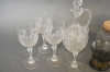9663. Parti glas bla skål Orrefors, karaff med vinglas och hundbensvas, högsta höjd 28 cm