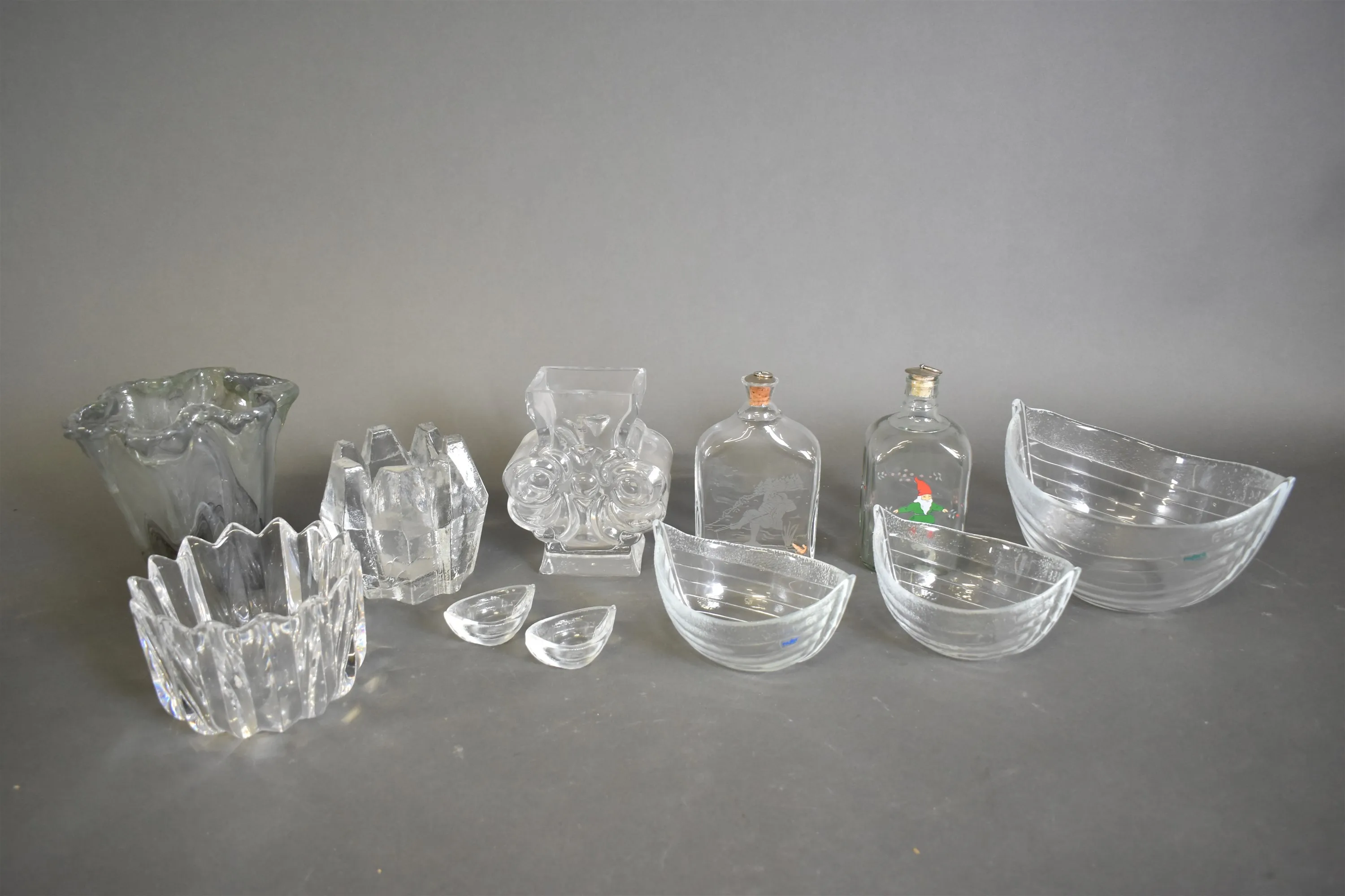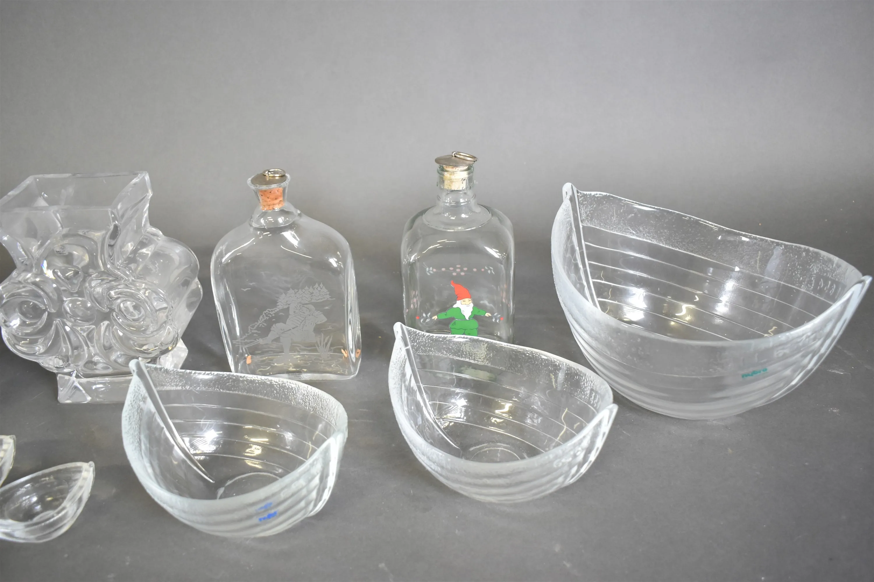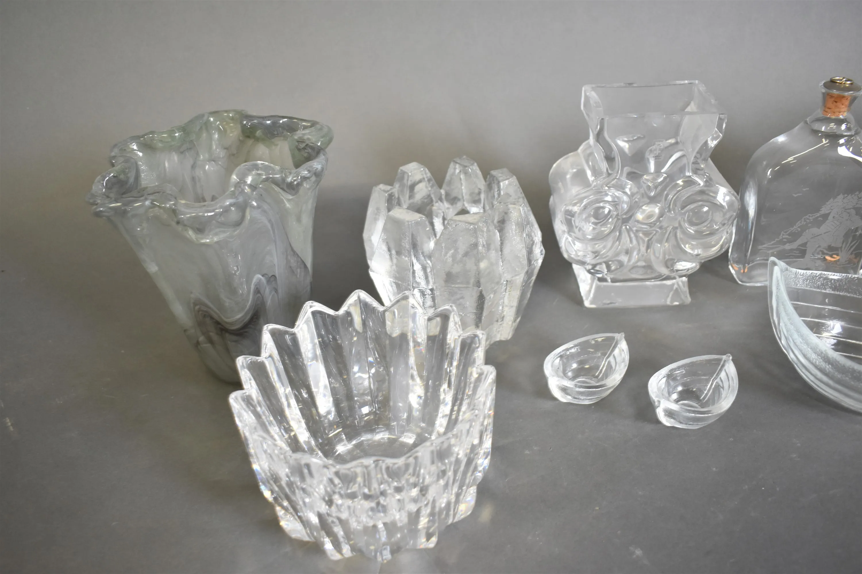 11656. Parti glas bla skål Orrefors, vas och karaffer, högsta höjd 20 cm