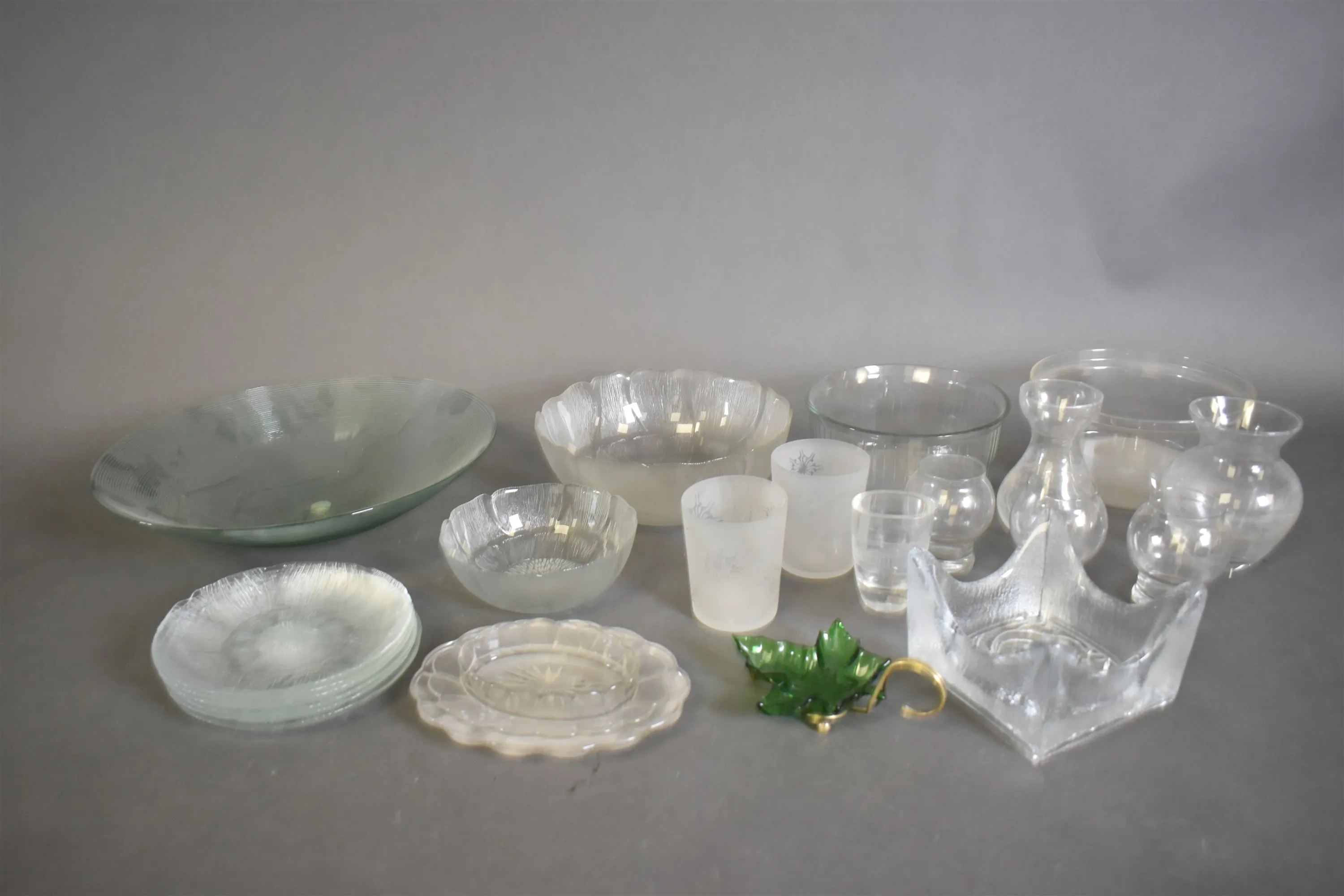13040. Parti glas bla skålar och skålfat, största diameter 39 cm