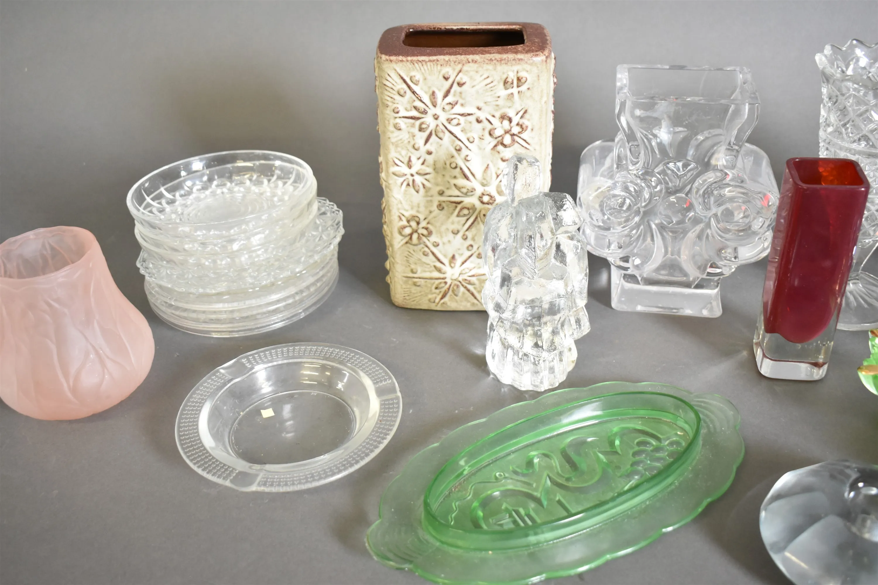 14356. Parti glas bla vaser och konstglas, högsta höjd 21 cm