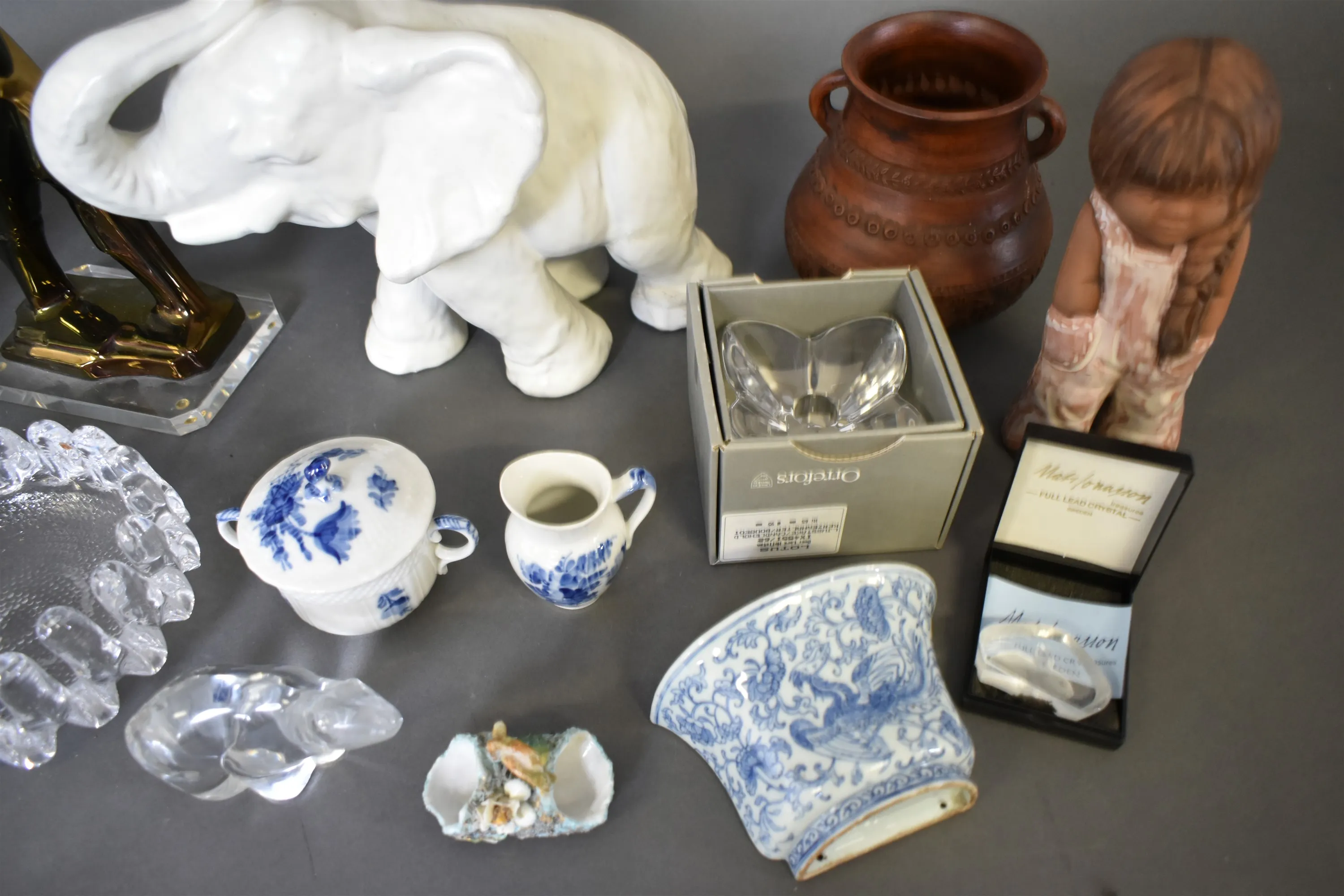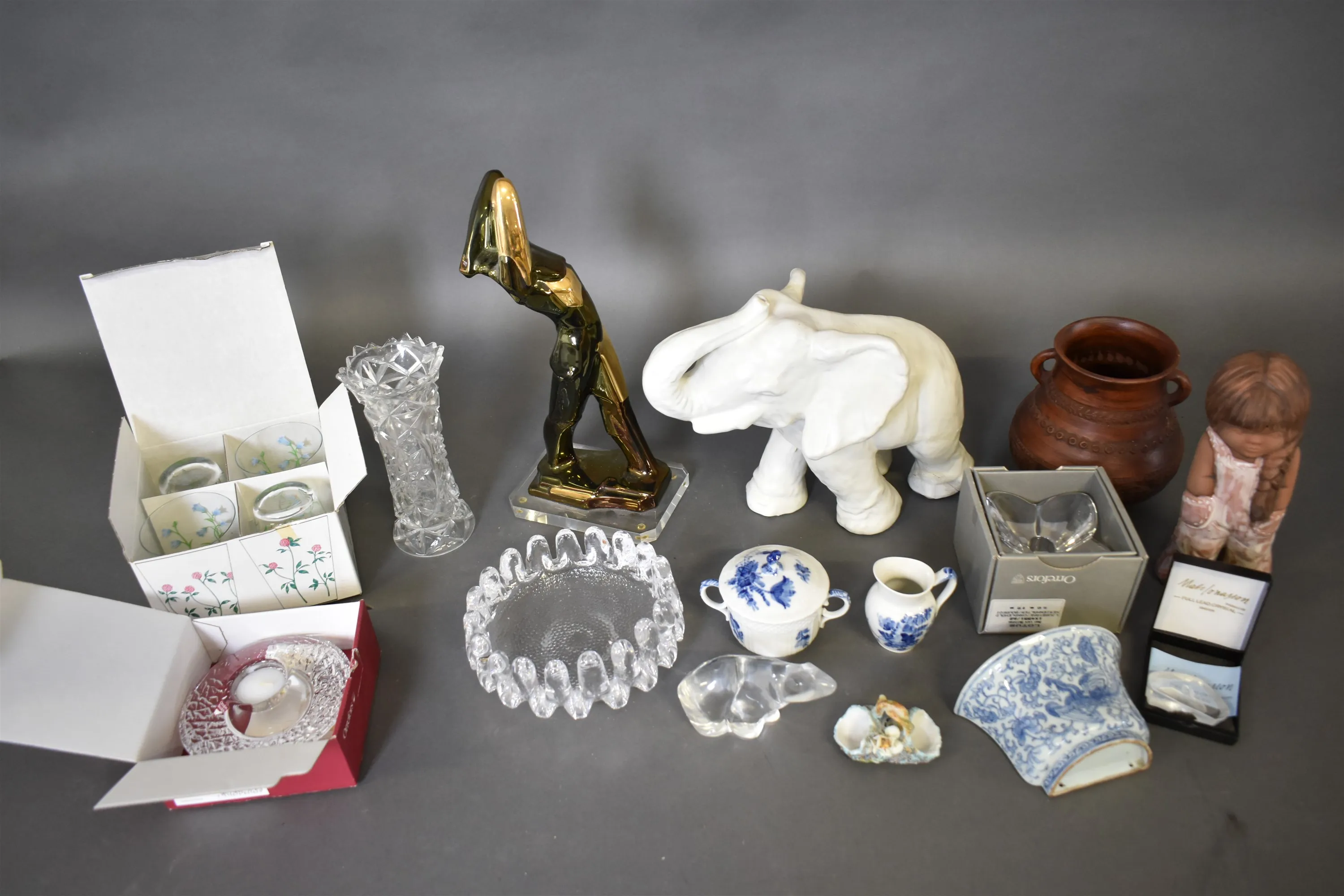 15066. Parti glas borslin bl.a servisdelar Blå Blomster K.D, Orreforsföremål, elefanten är limmad, högsta 36 cm