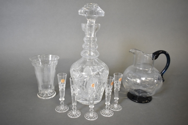 10563. Parti glas; karaff, småglas, kanna och vas bl.a snapsglas Glimma Glasbruk, högsta höjd 30 cm