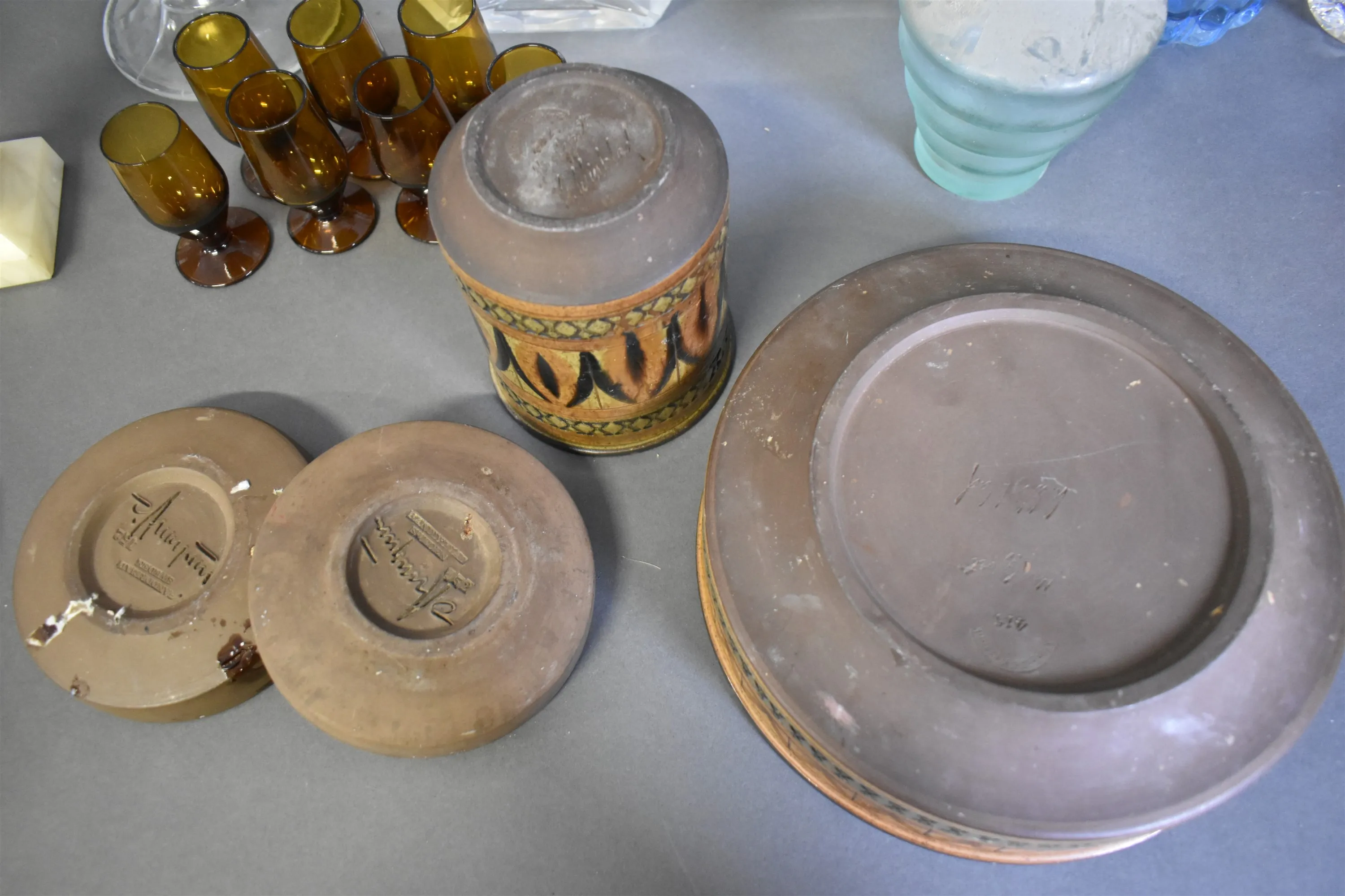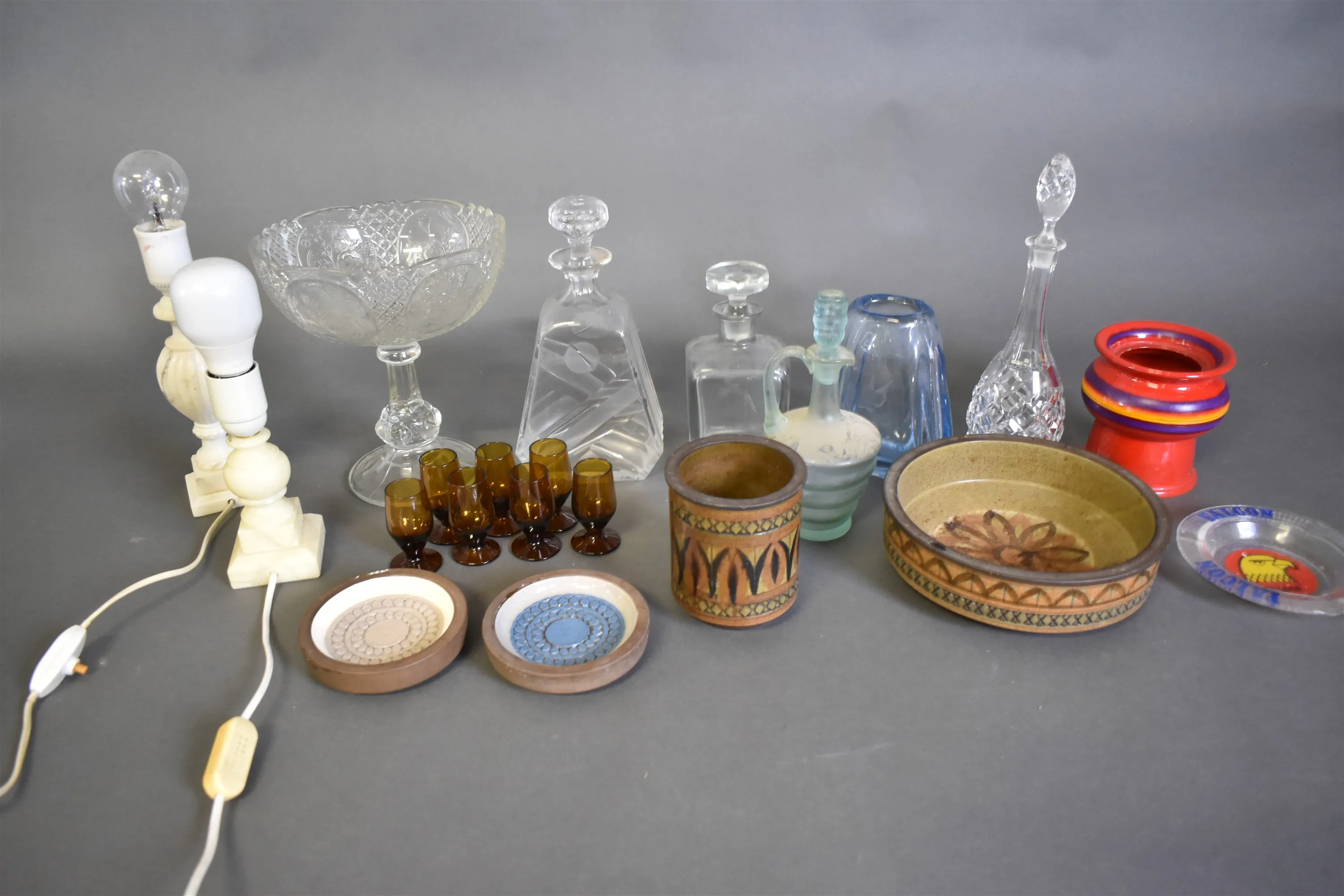 3957. Parti glas, keramik & lampor högsta 31 cm