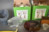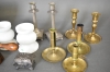 10650. Parti glas och metall bla glas med julmotiv Mariehult, skål Mats Jonasson och mässingljusstakar, högsta höjd 20 cm