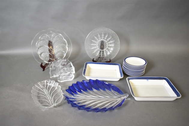 16768. Parti glas/porslin bl.a assietter Rörstrand & glasblock Mats Jonasson längsta 40 cm