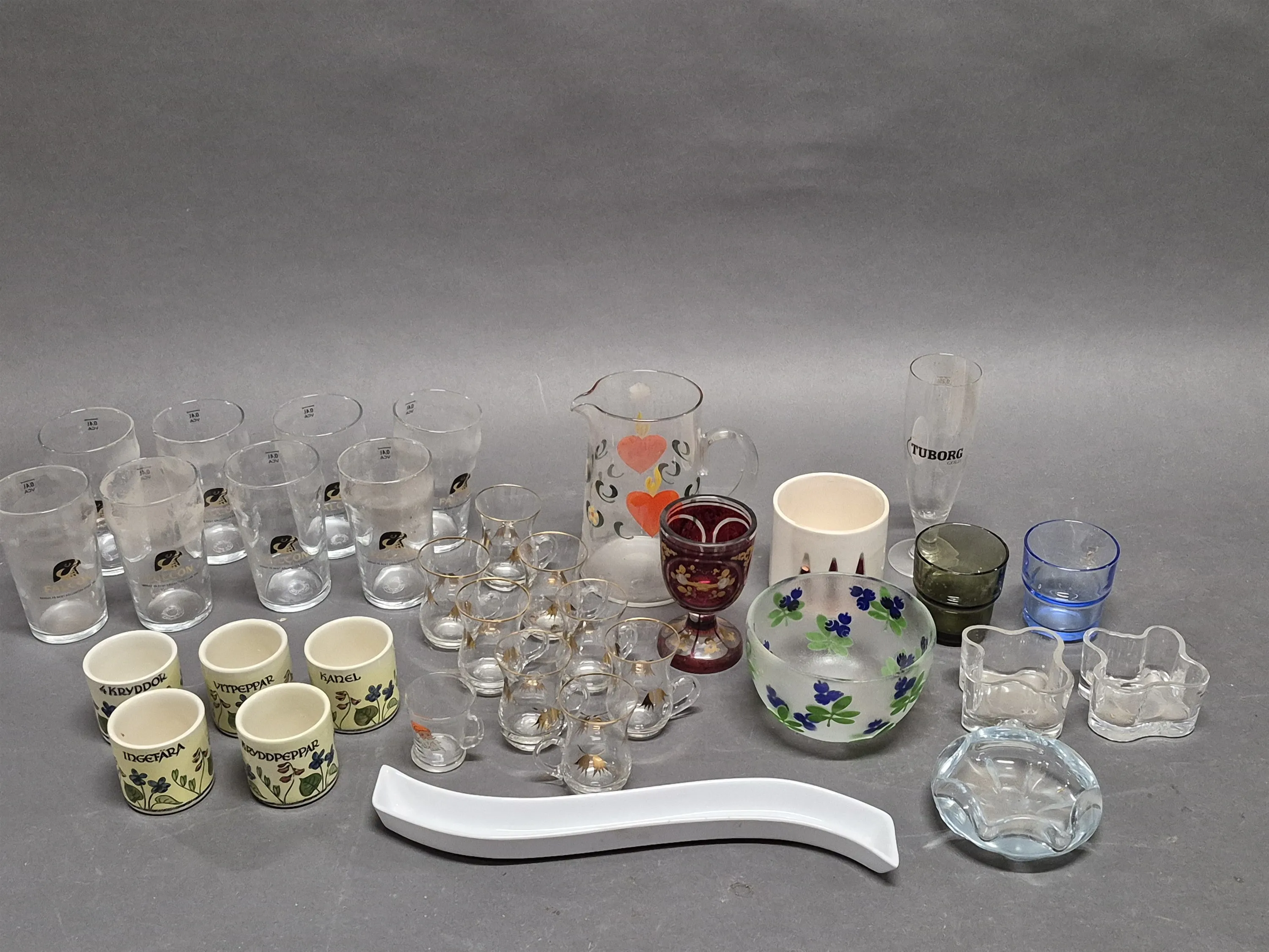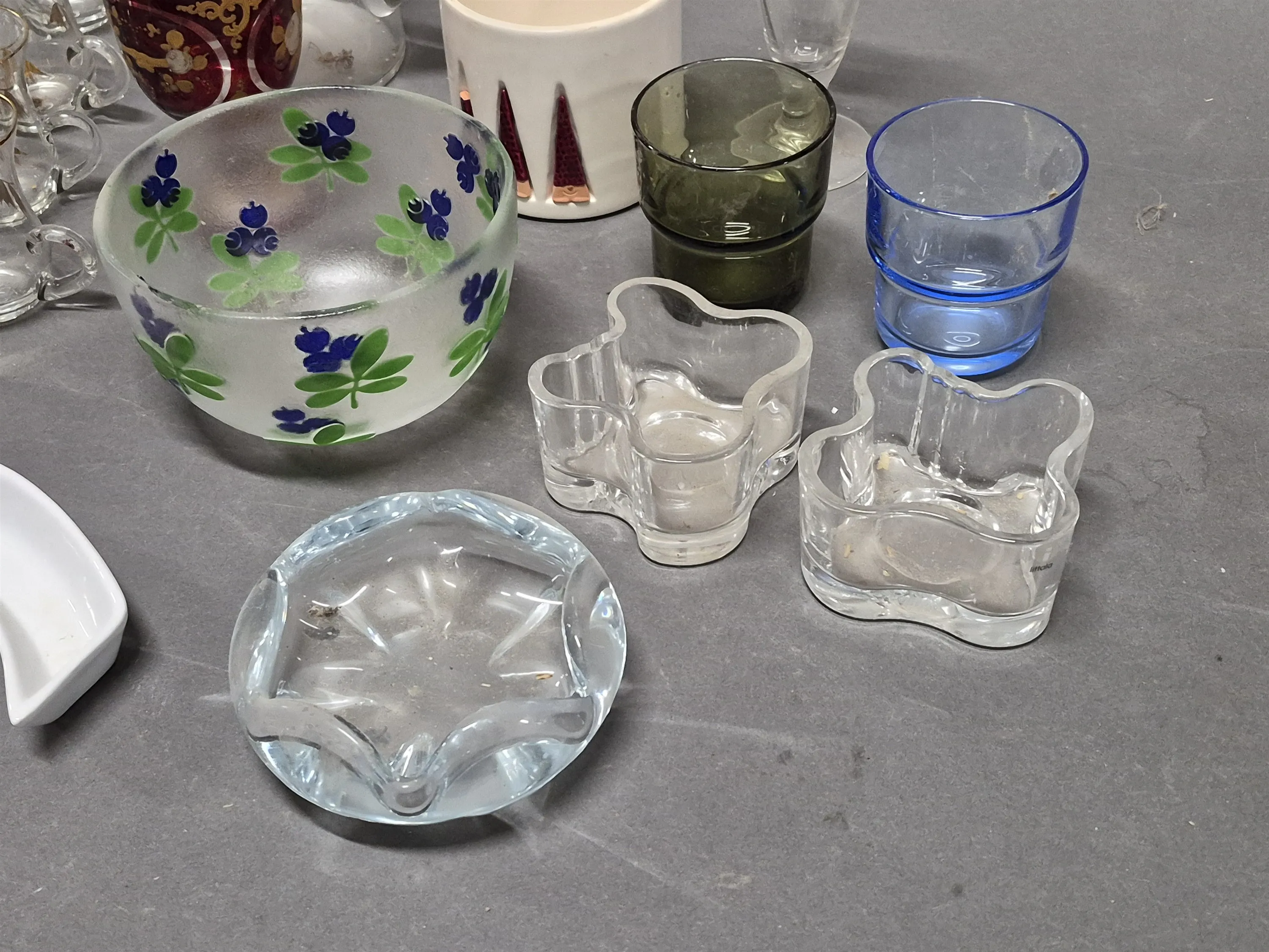 19335. Parti glas/porslin bl.a skål Paul Hoff Kosta, glas & ljushållare IIttala, alliansglas högsta 19,5 cm