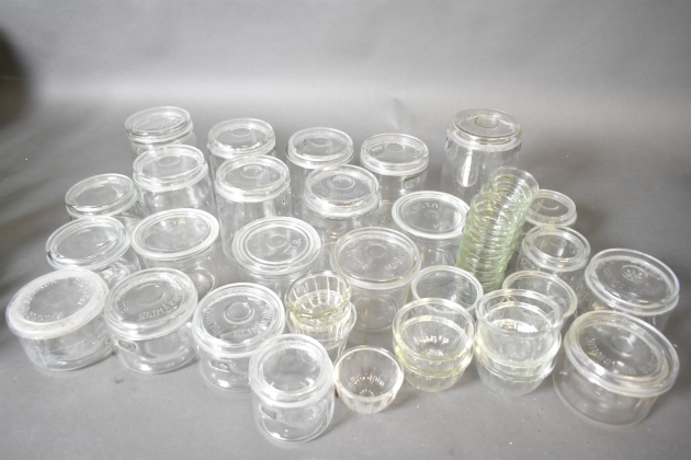 15664. Parti glasburkar & geléskålar, högsta 21 cm