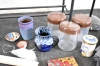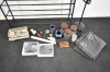 11898. Parti golvlampa, hylla och diverse hushållstillbehör, högsta höjd 140 cm