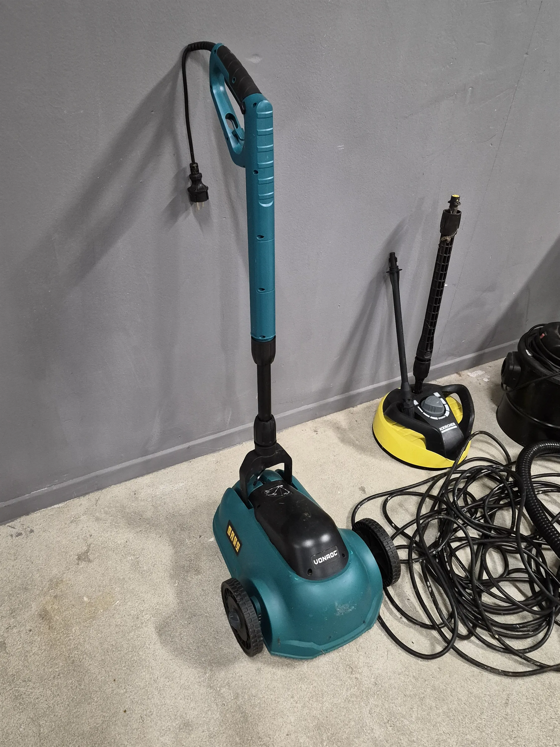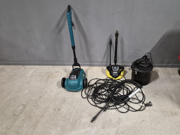 18837. Parti gräsklippare, asksug & delar till högtryckstvätt & gräsklippare Flymo