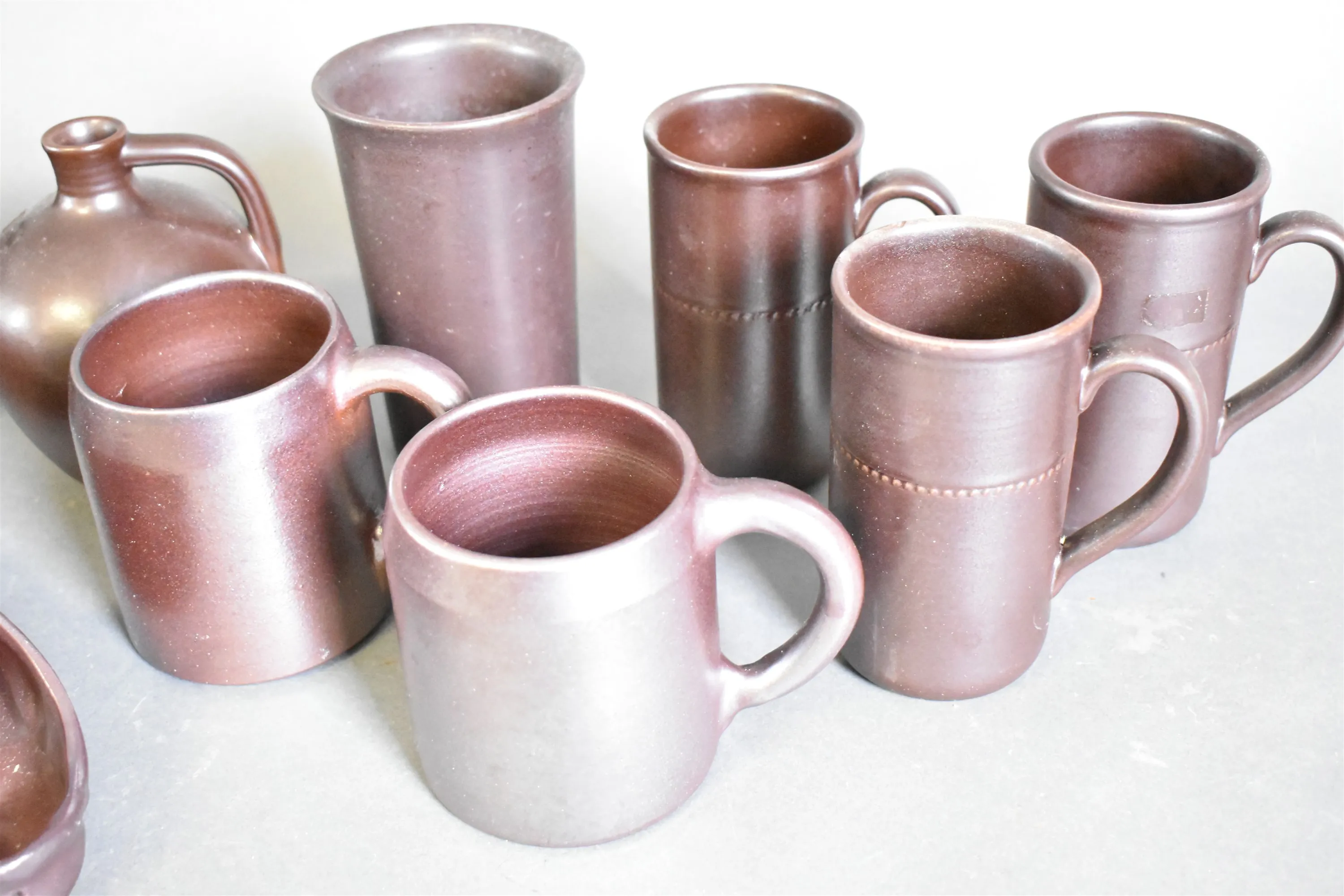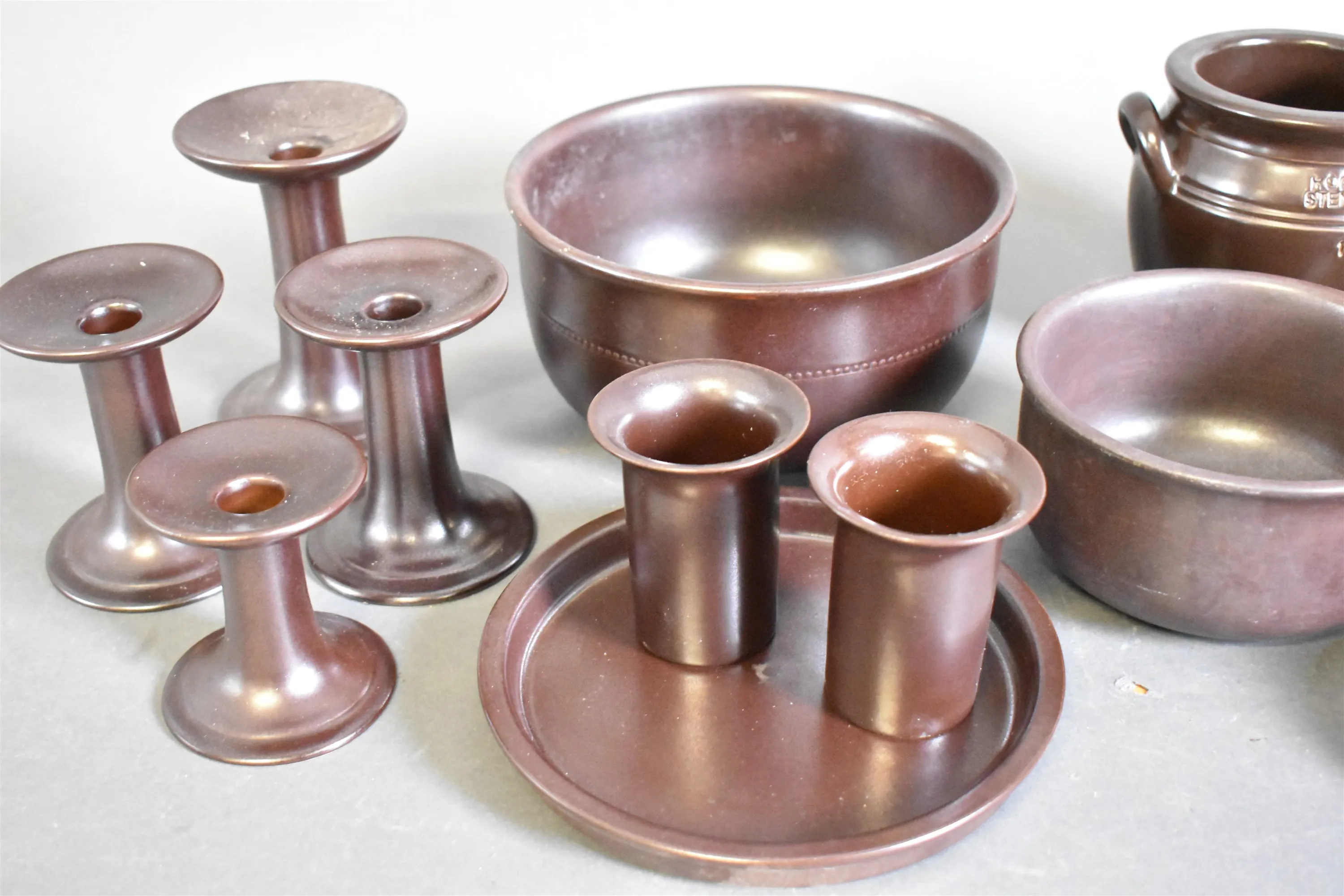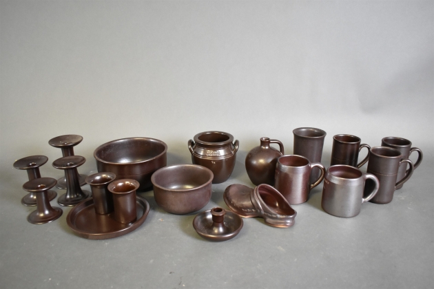 13908. Parti Höganäs bla krus, ljusstakar och skålar, högsta höjd 15 cm