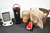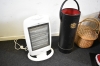 11719. Parti halogenvärmare, korgar, pläd och paraplyställ, högsta höjd 64 cm