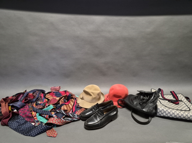 17958. Parti herr- och dam accessorarer bla väskor och slipsar