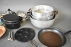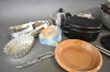 9717. Parti husgeråd bla plättjärn i gjutjärn kastruller och kanna Vilshult, högsta höjd på bild 26 cm
