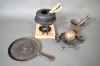 28. Parti järnföremål bl.a fonduegryta & stekjärn längd 30 cm
