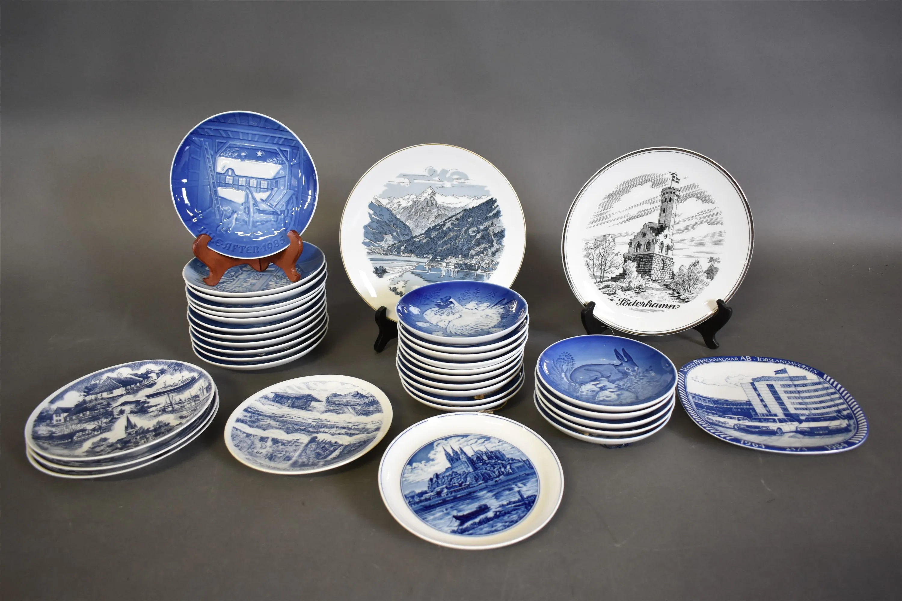 16441. Parti jul- och samlartallrikar bla B&G, Rosenthal och Meissen, största diameter 25 cm