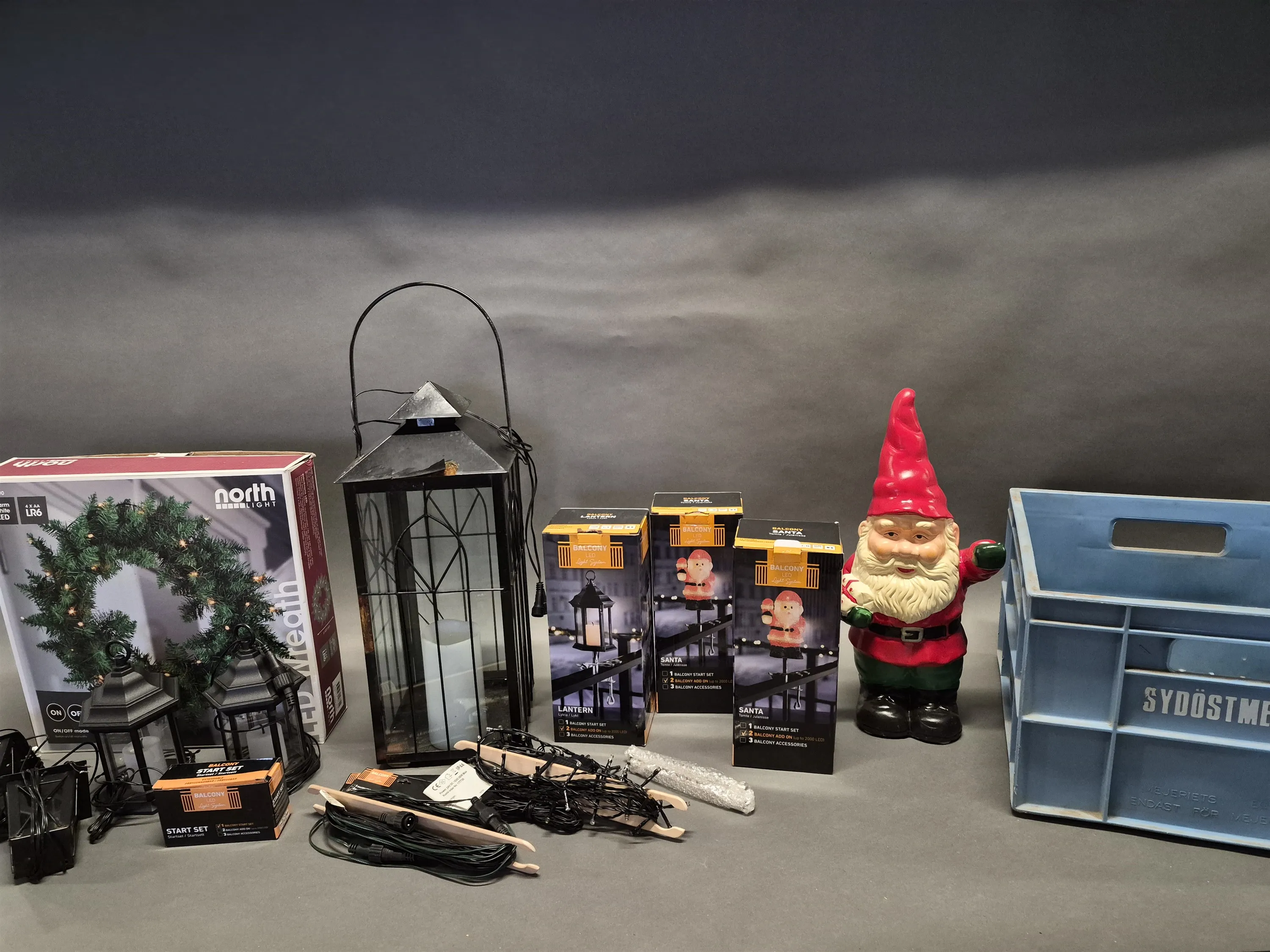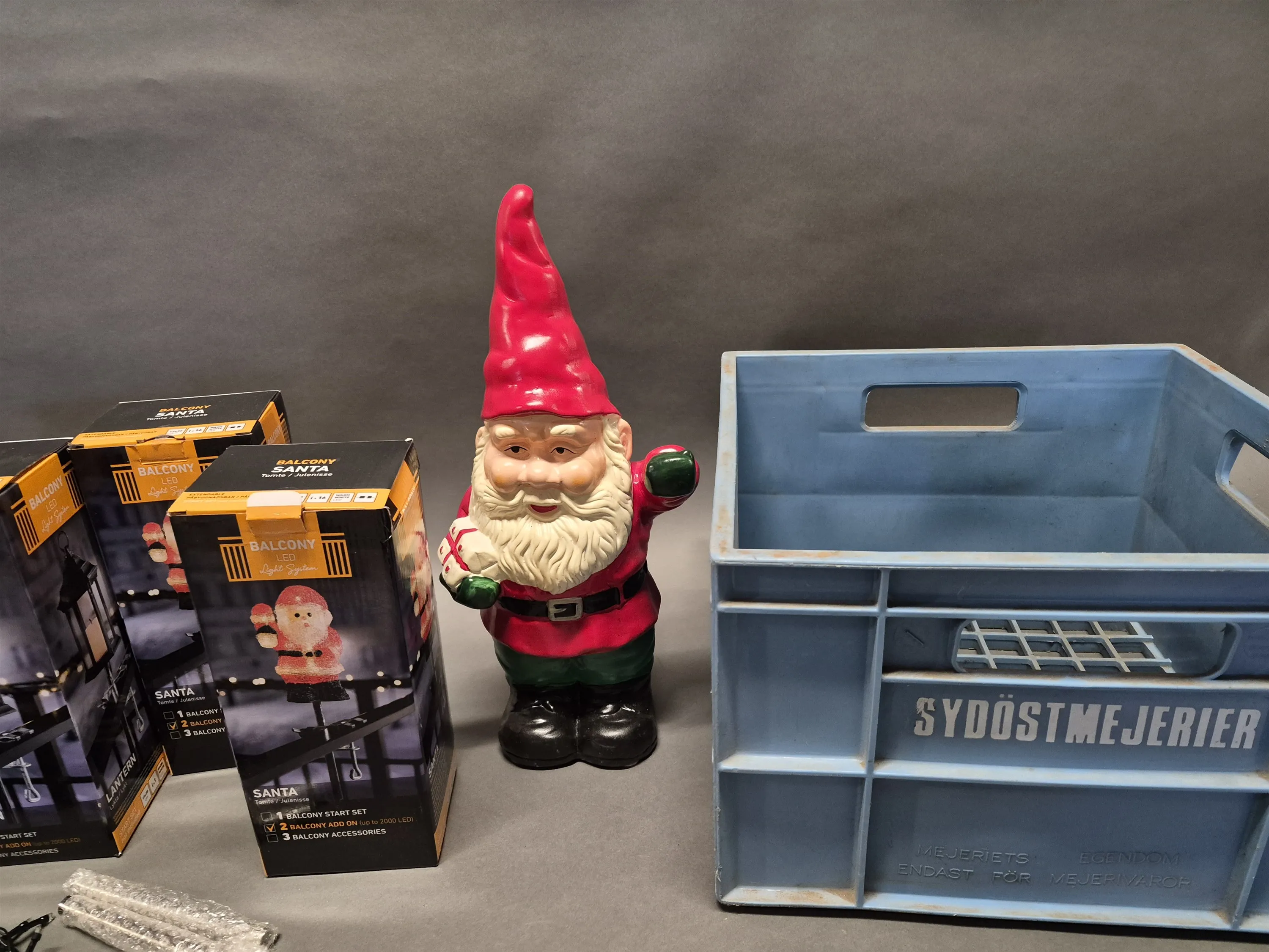 19109. Parti julbelysning, tomte och mjölkback, högsta höjd 60 cm