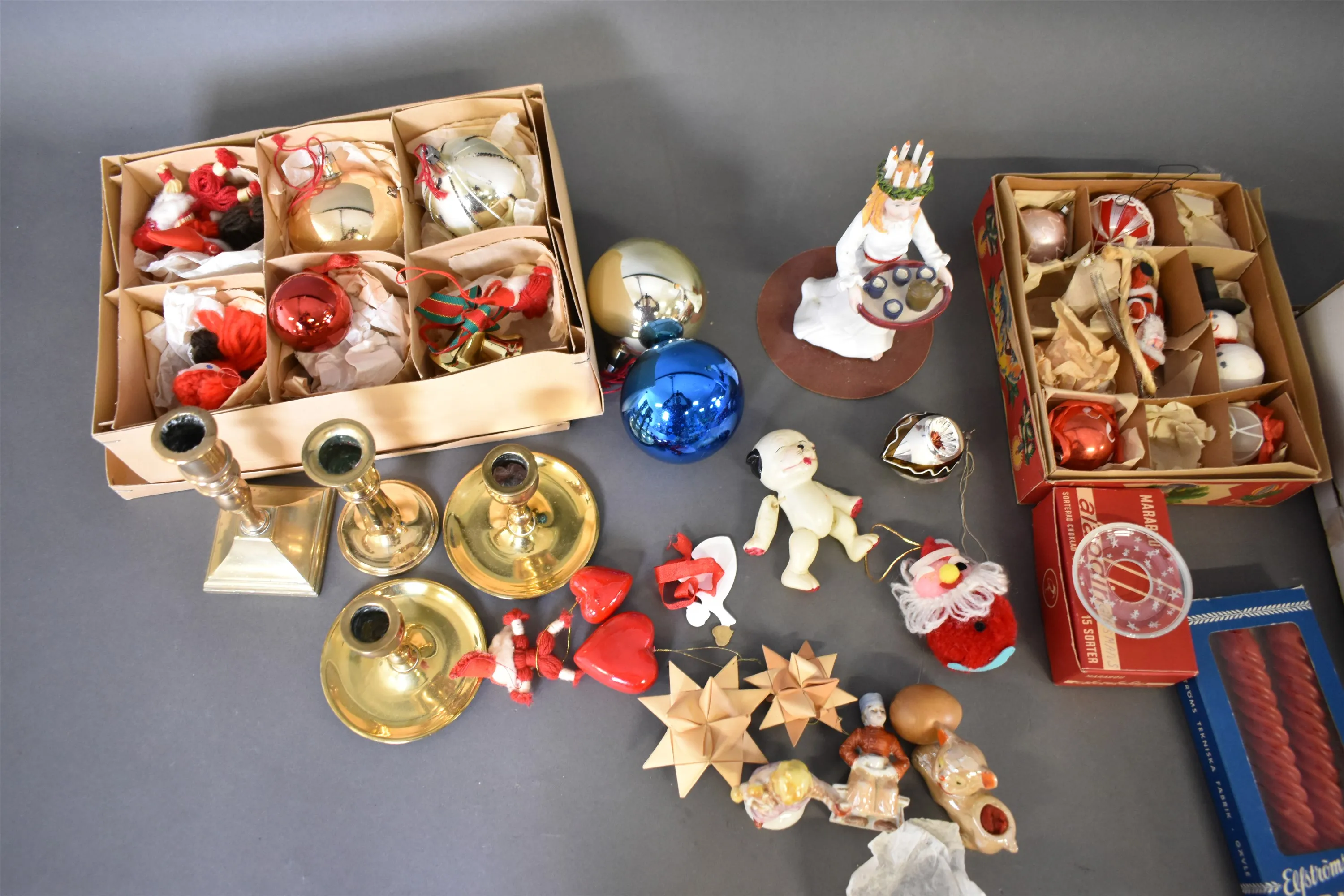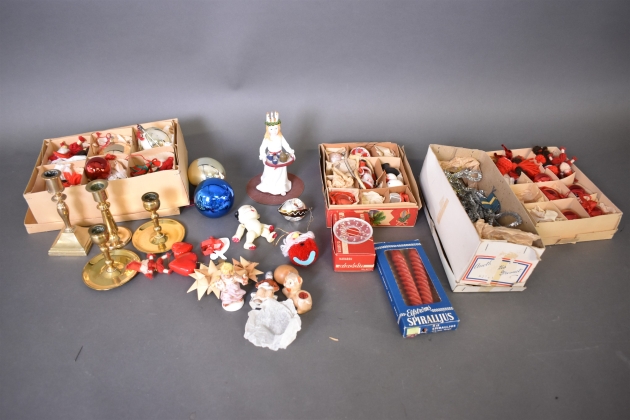 13388. Parti julsaker & mässingsljusstakar högsta 16 cm
