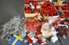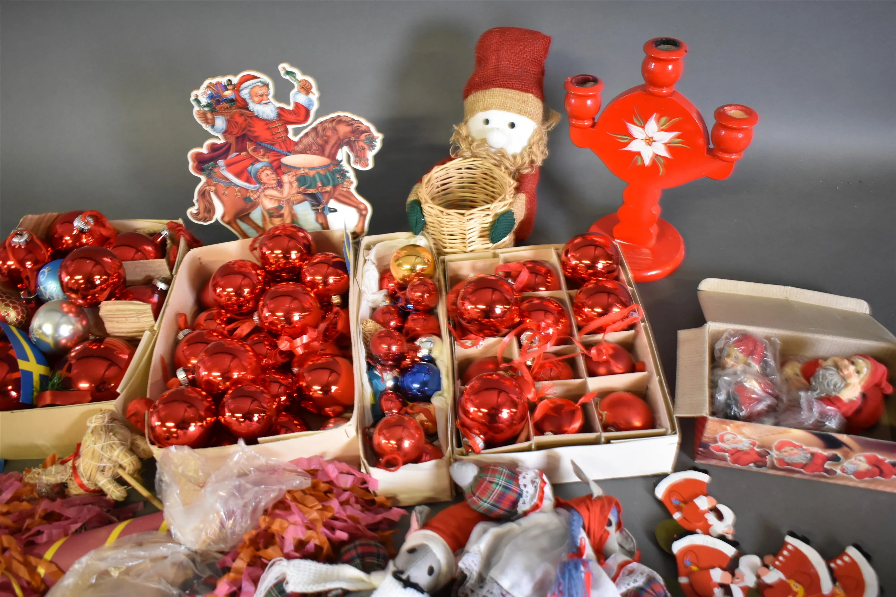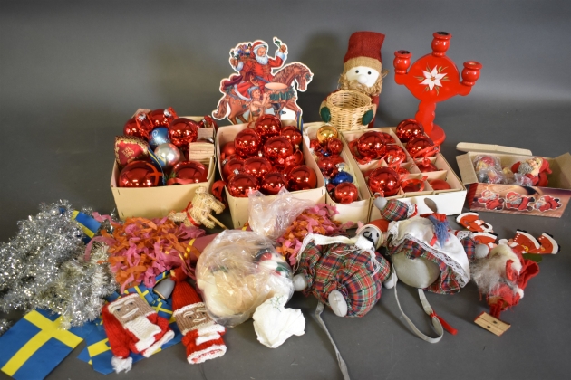 16554. Parti julsaker bl.a kulor & träljusstake, högsta 29 cm