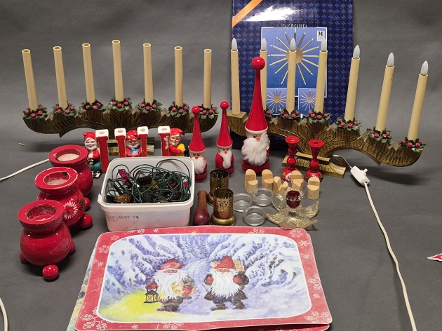 17333. Parti julsaker bl.a ljusstakar, högsta 40 cm