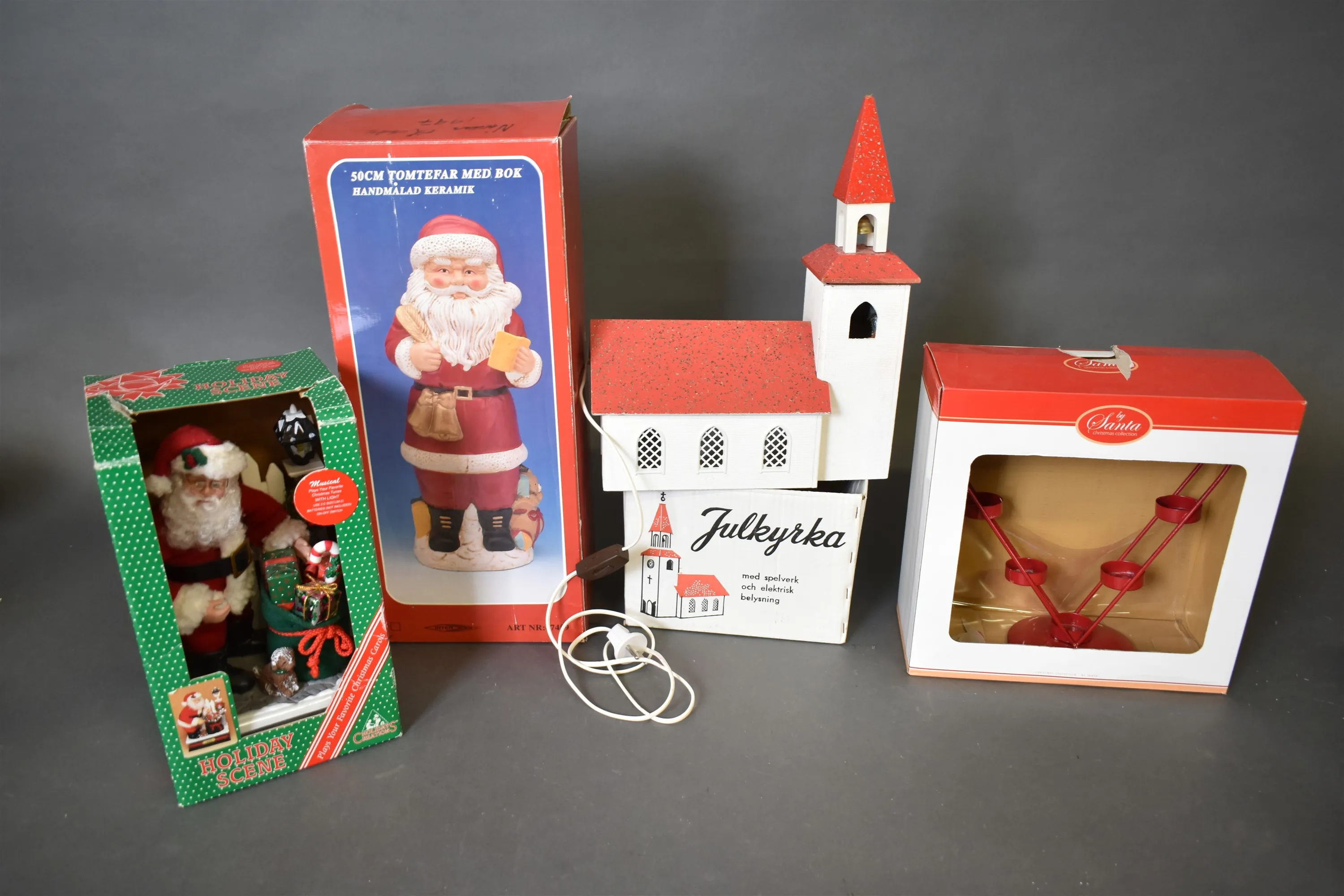 9100. Parti julsaker bl.a tomtar & kyrka högsta 50 cm