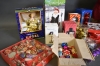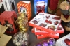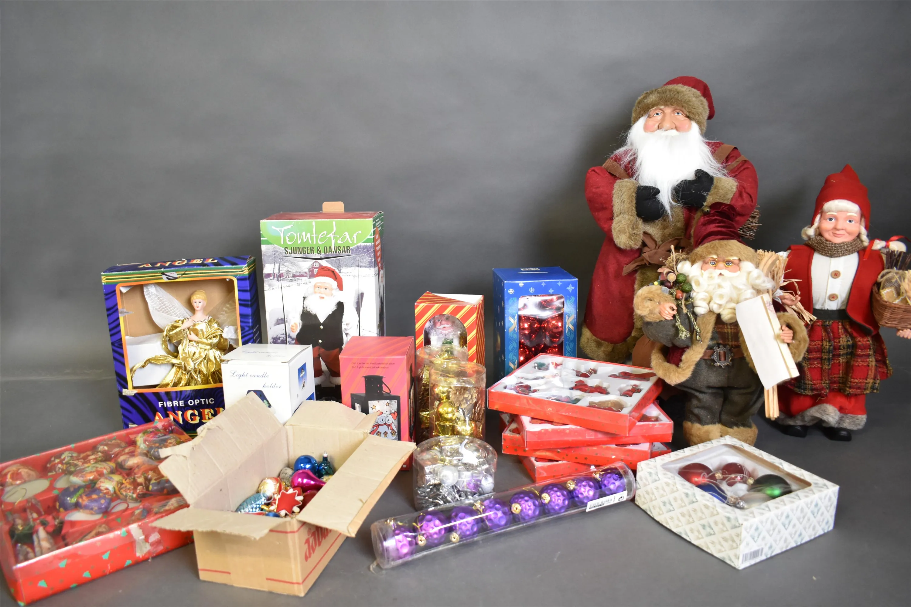 9874. Parti julsaker bla dansande tomte, julgranshängen och tomtefar & tomtemor figurer, högsta höjd 70 cm