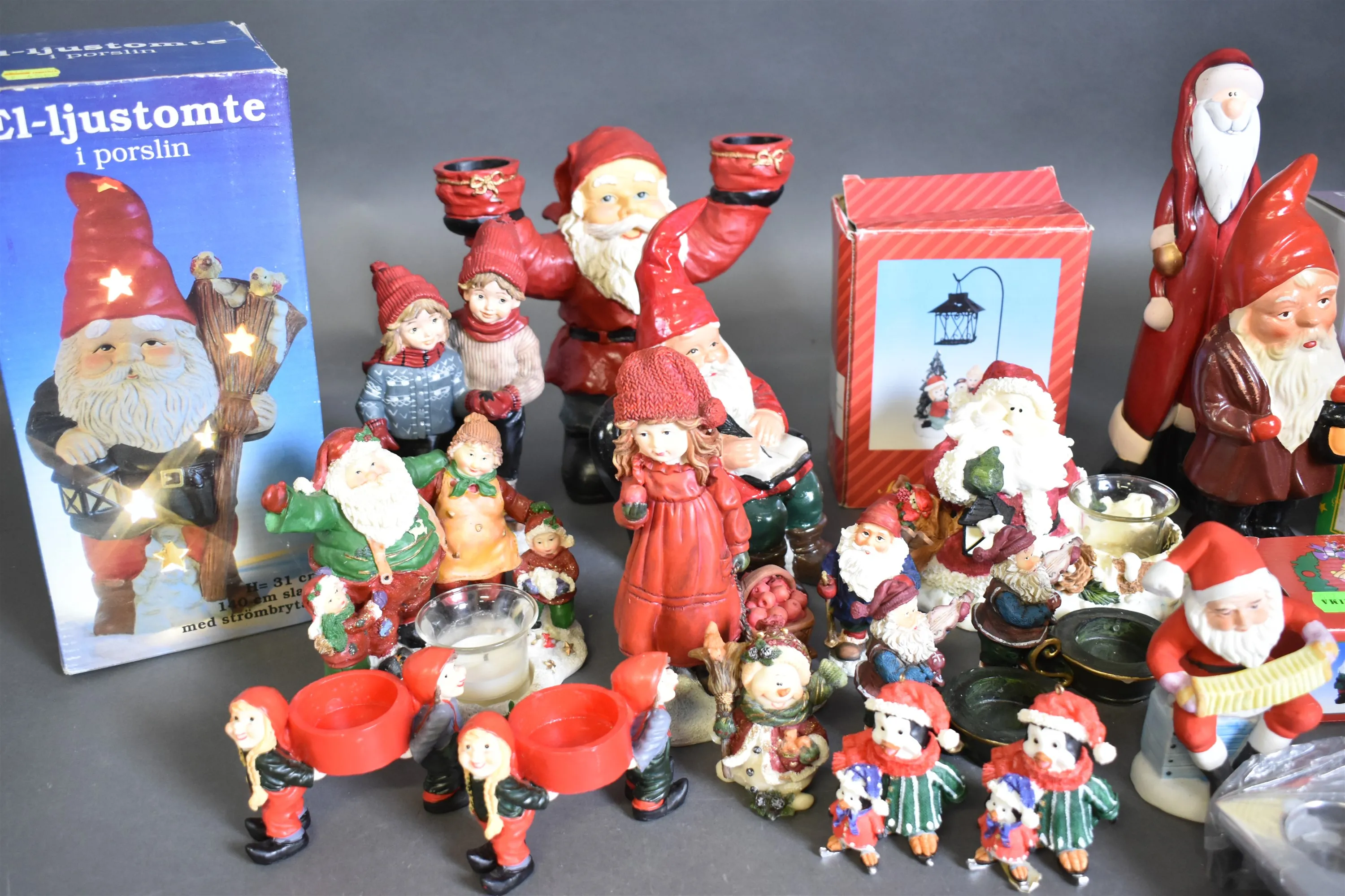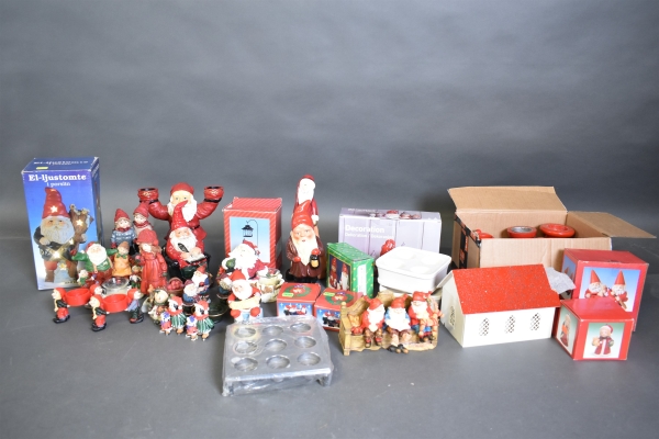 9872. Parti julsaker bla figurer i porslin & konstmassa, kyrka och träljusstakar, högsta höjd 32 cm, 2 lådor
