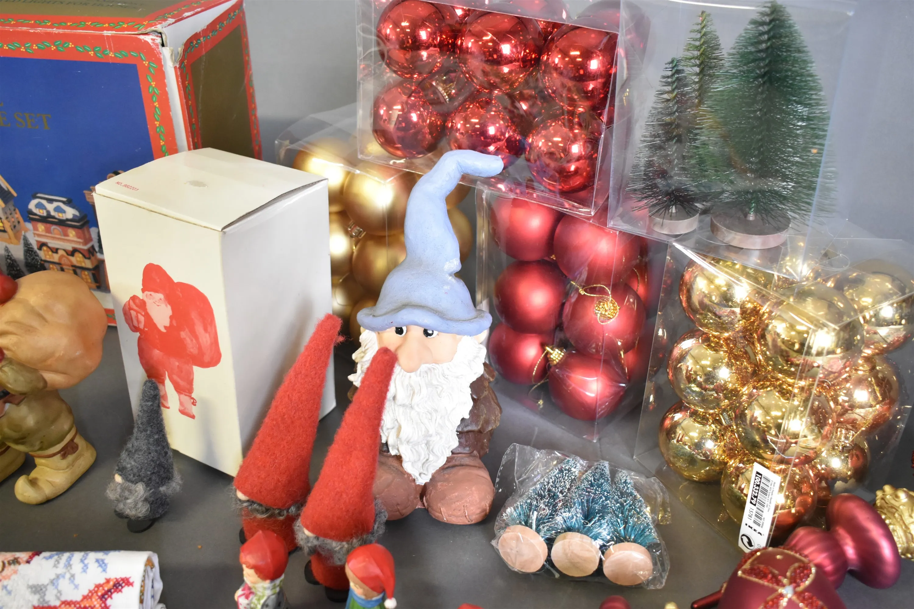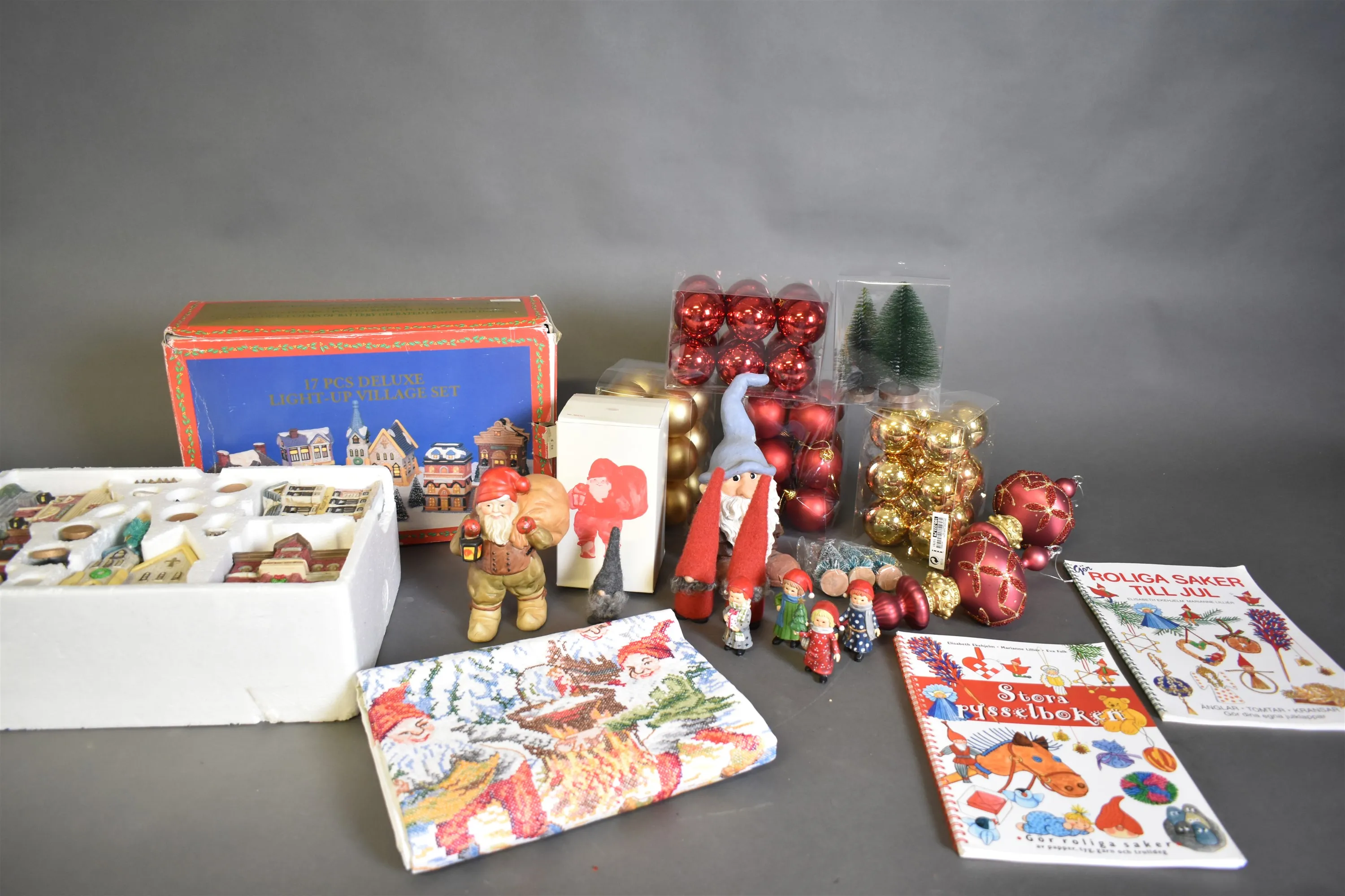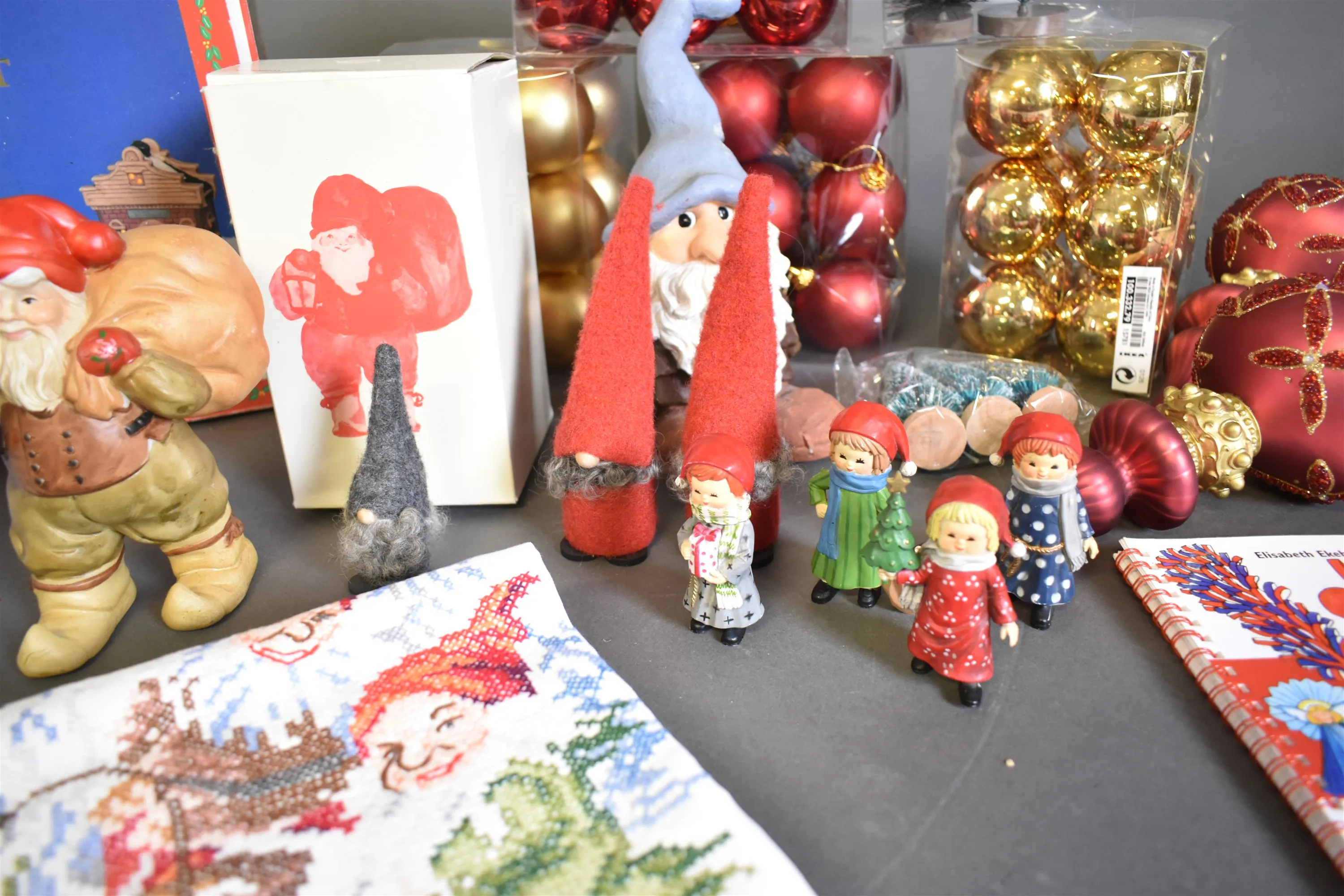 4383. Parti julsaker bla julby, julkulor och dekorationstomtar, längsta mått 41 cm