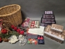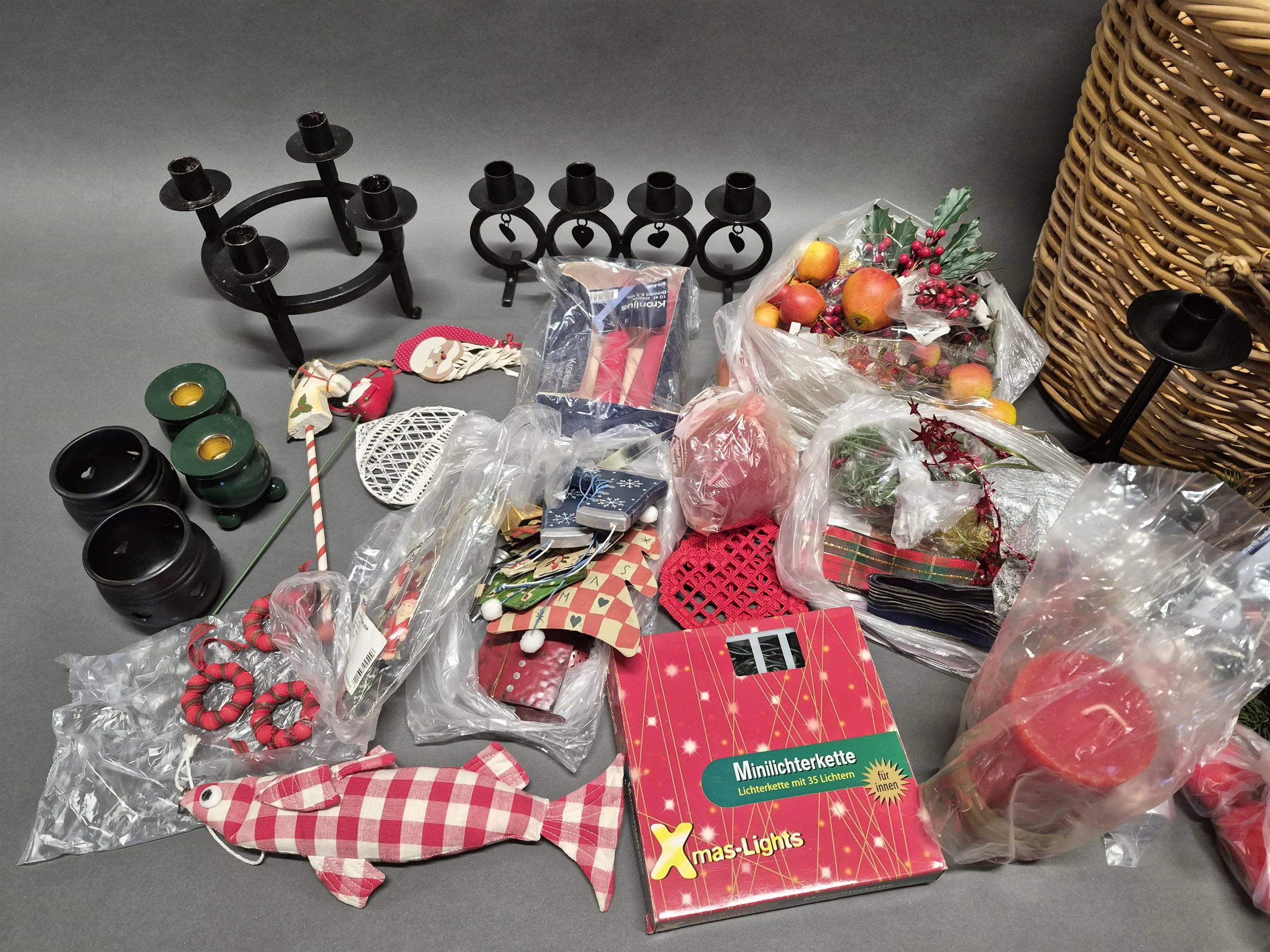 16869. Parti julsaker ljus & korg högsta 35 cm