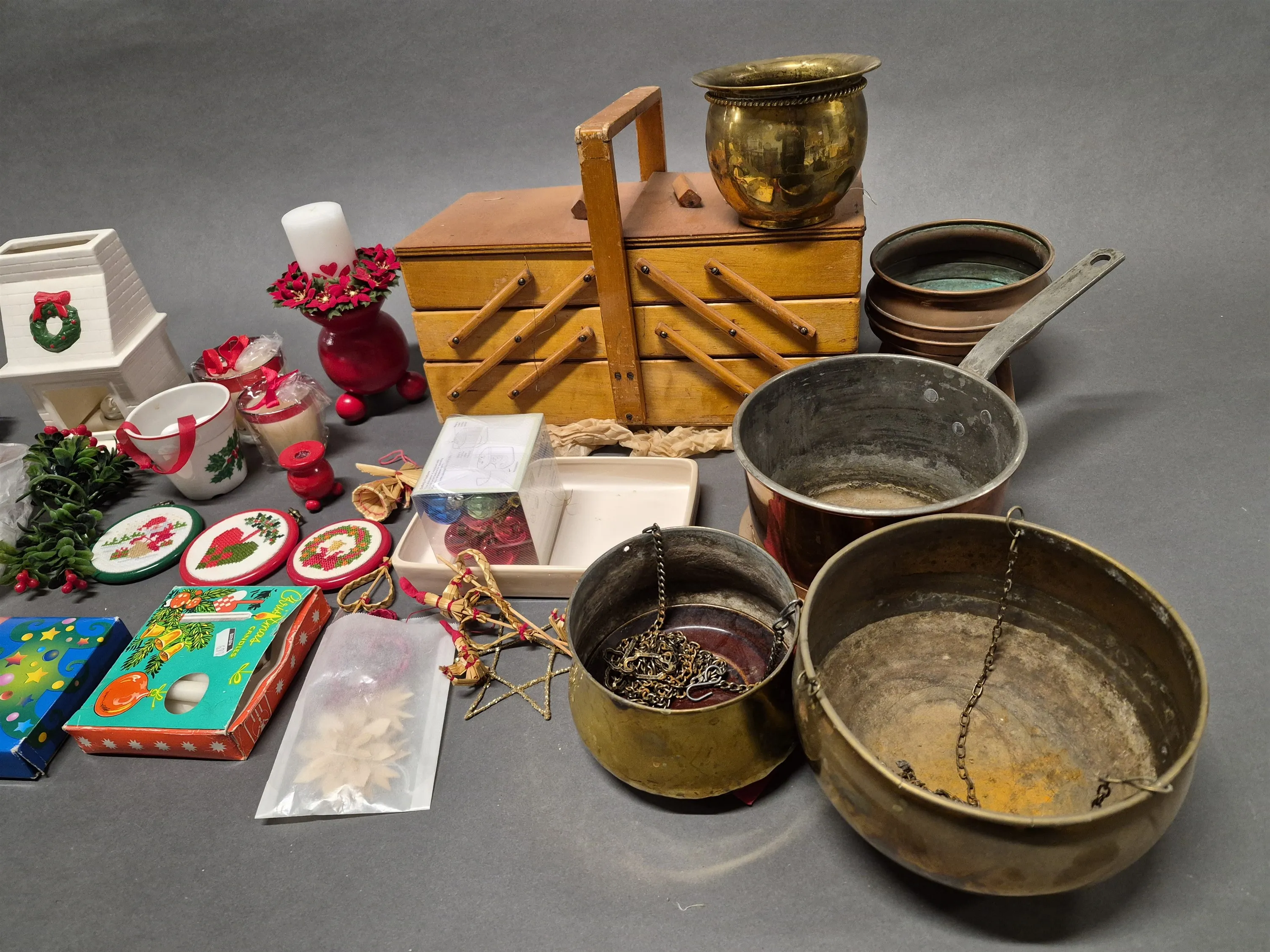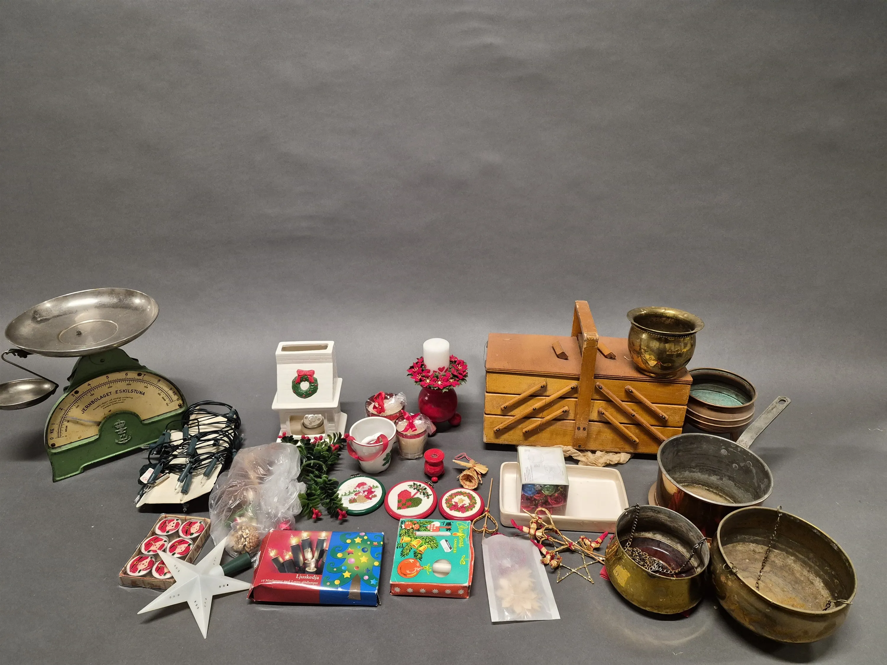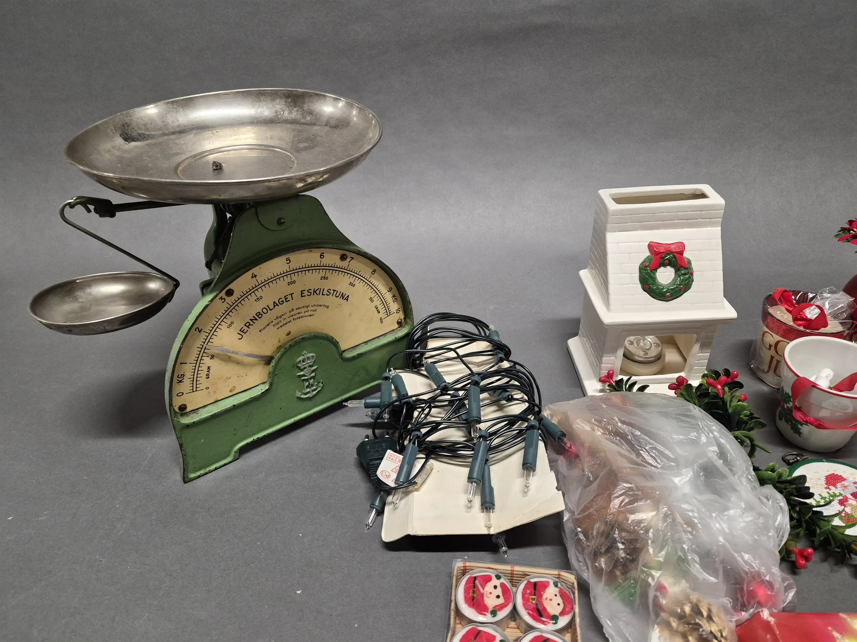 18197. Parti julsaker, syskrin med innehåll & köksvåg, högsta 25 cm