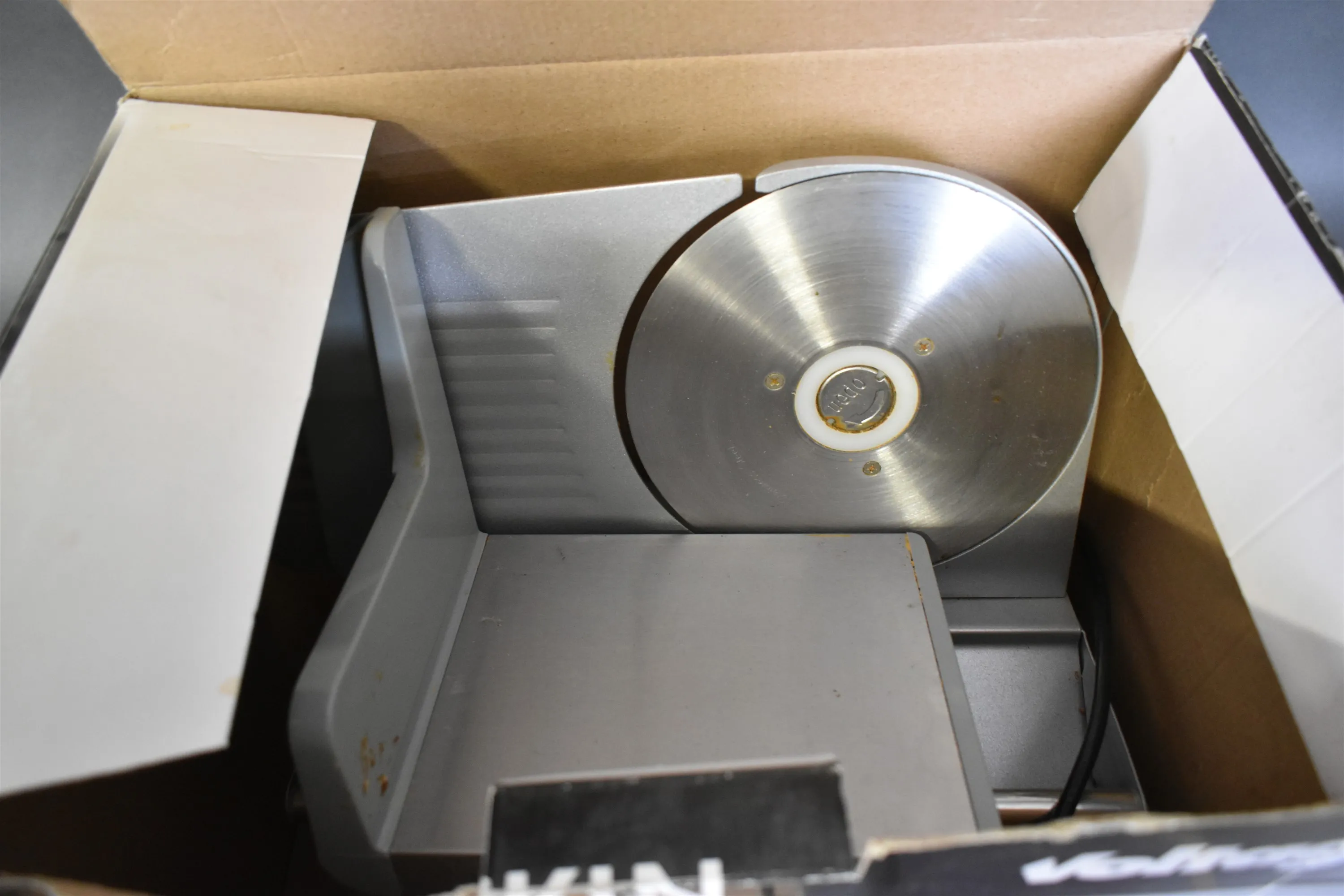 9092. Parti köksföremål bl.a skärmaskin & kvarn Manerström, högsta 39 cm