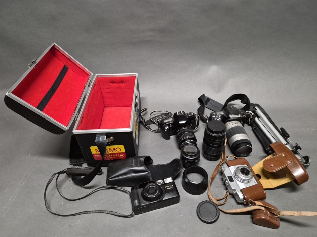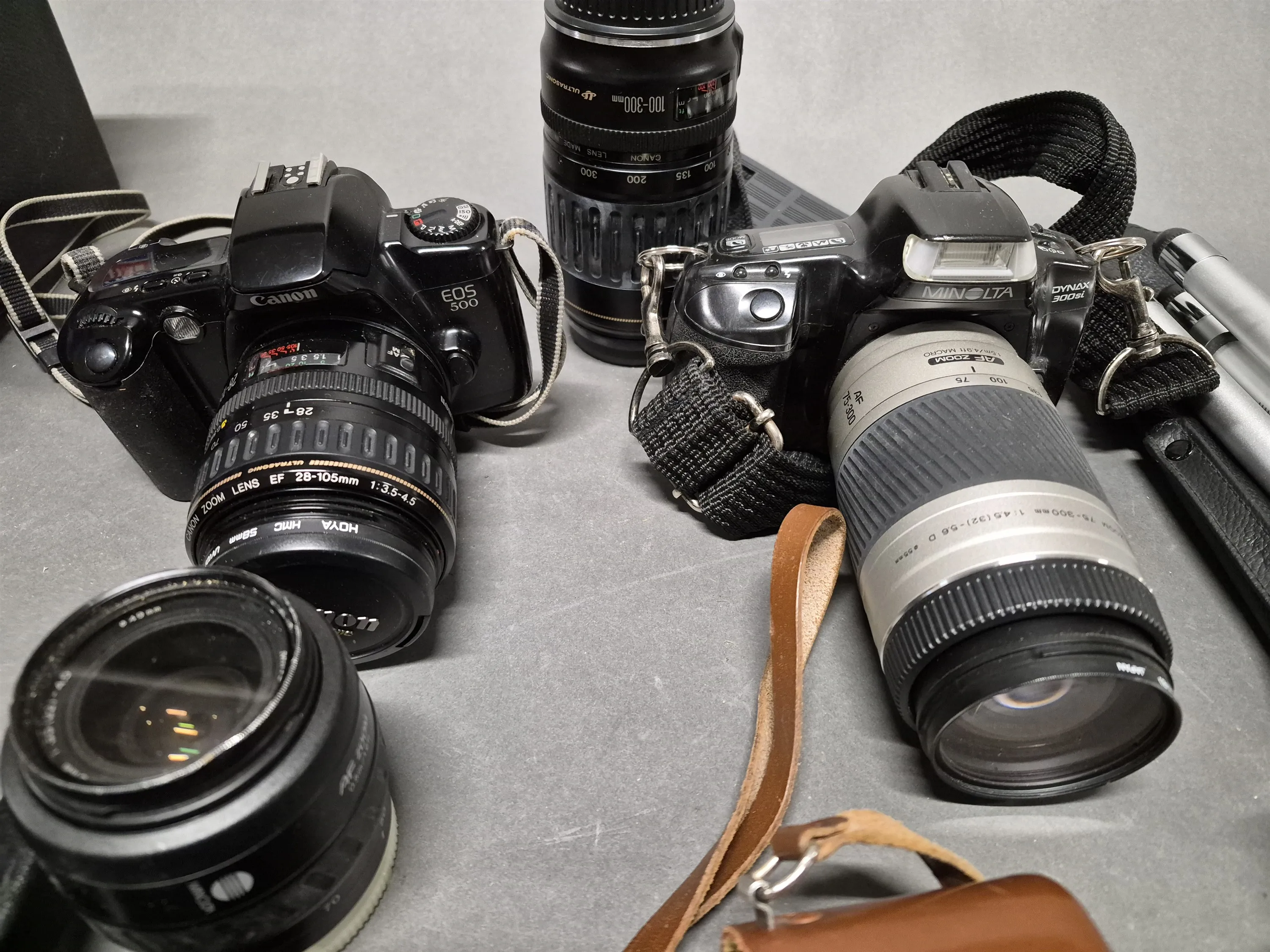 18967. Parti kameror & systemkamera med tillbehör Canon & Minolta