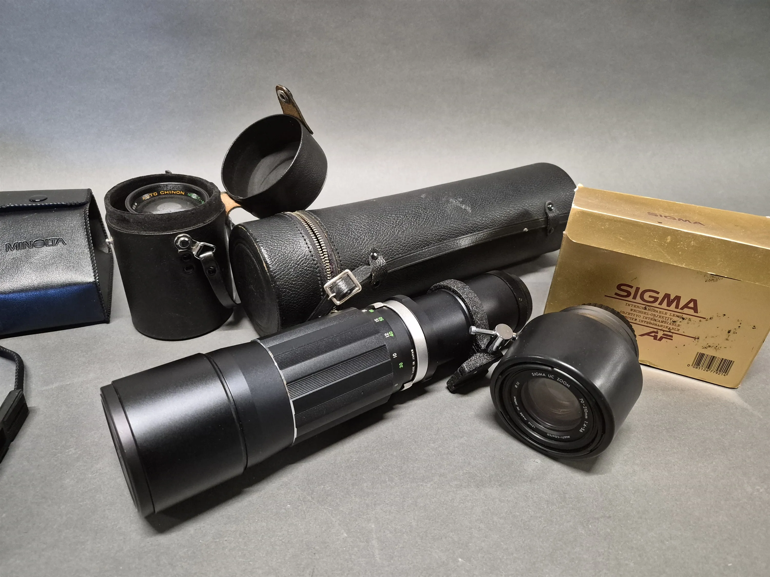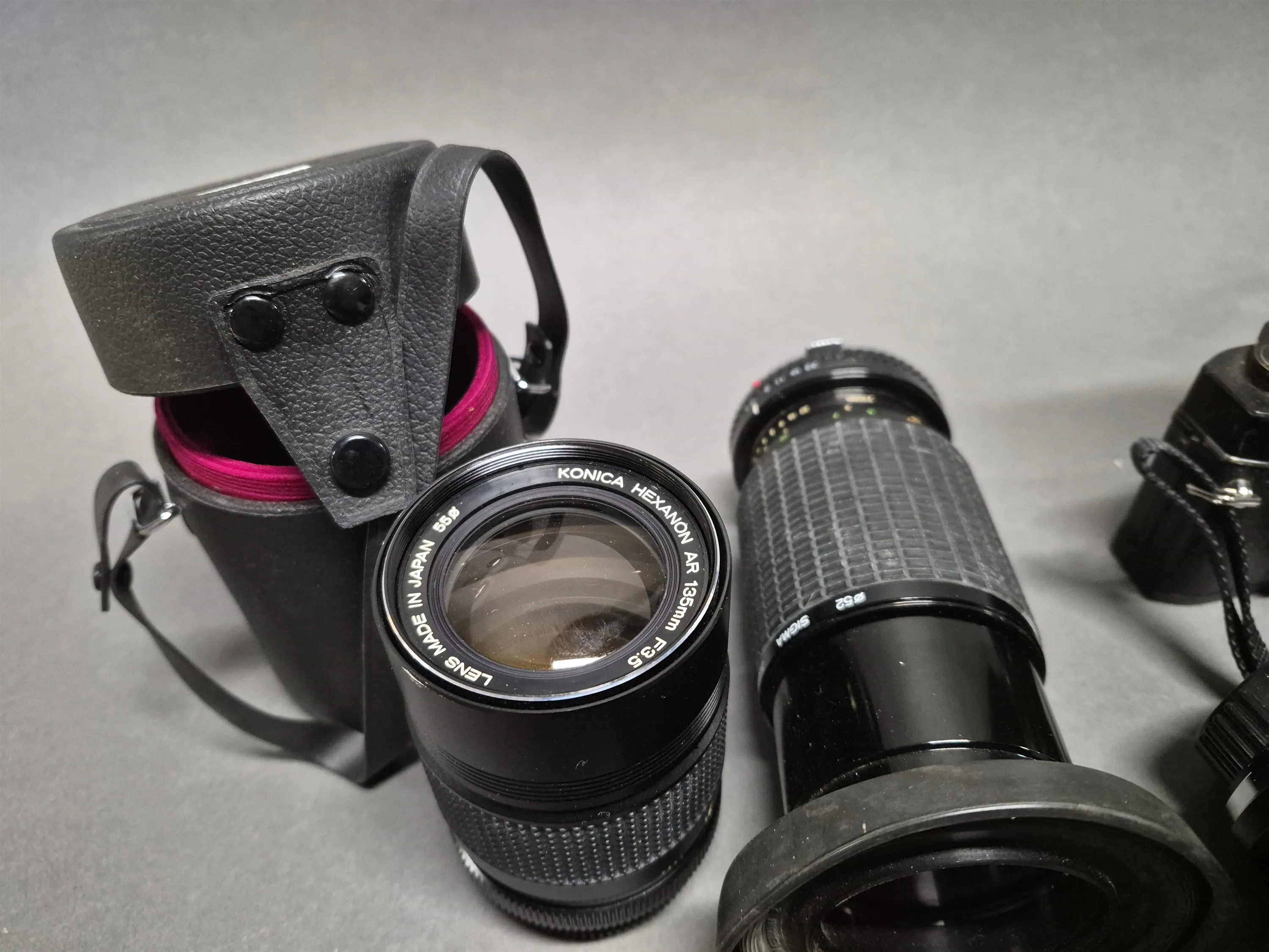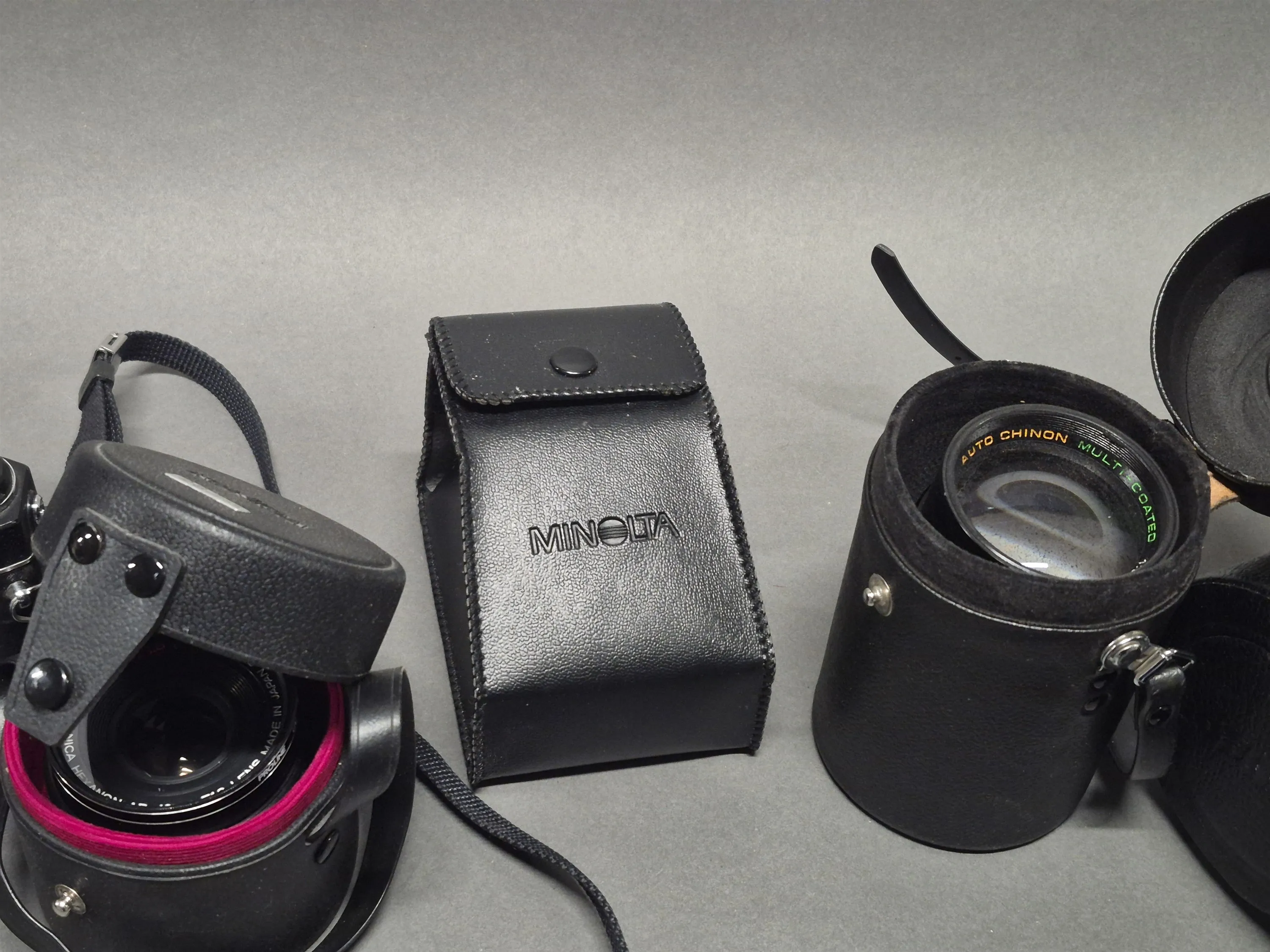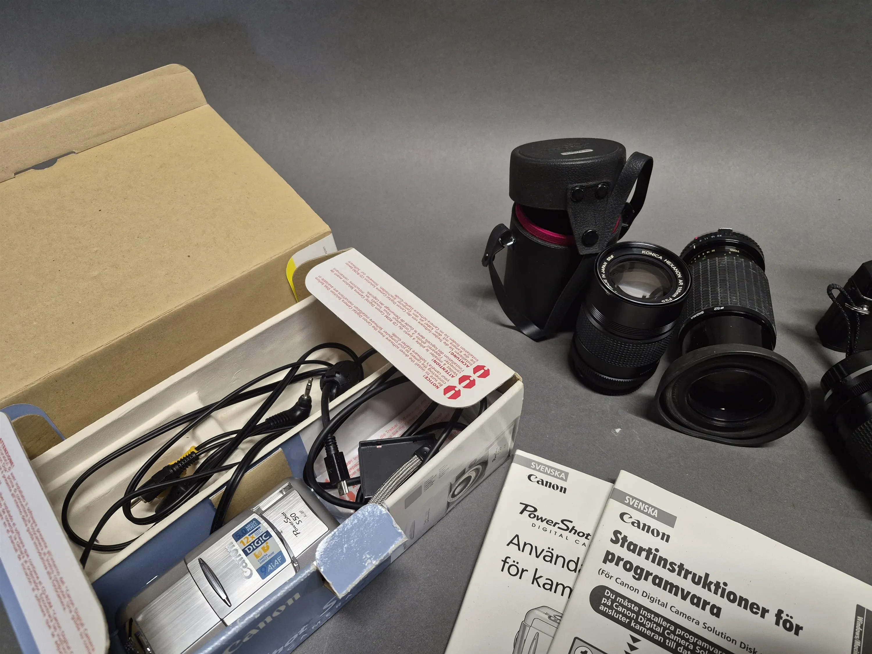 18047. Parti kameror bla Konica och objektiv, ej testat