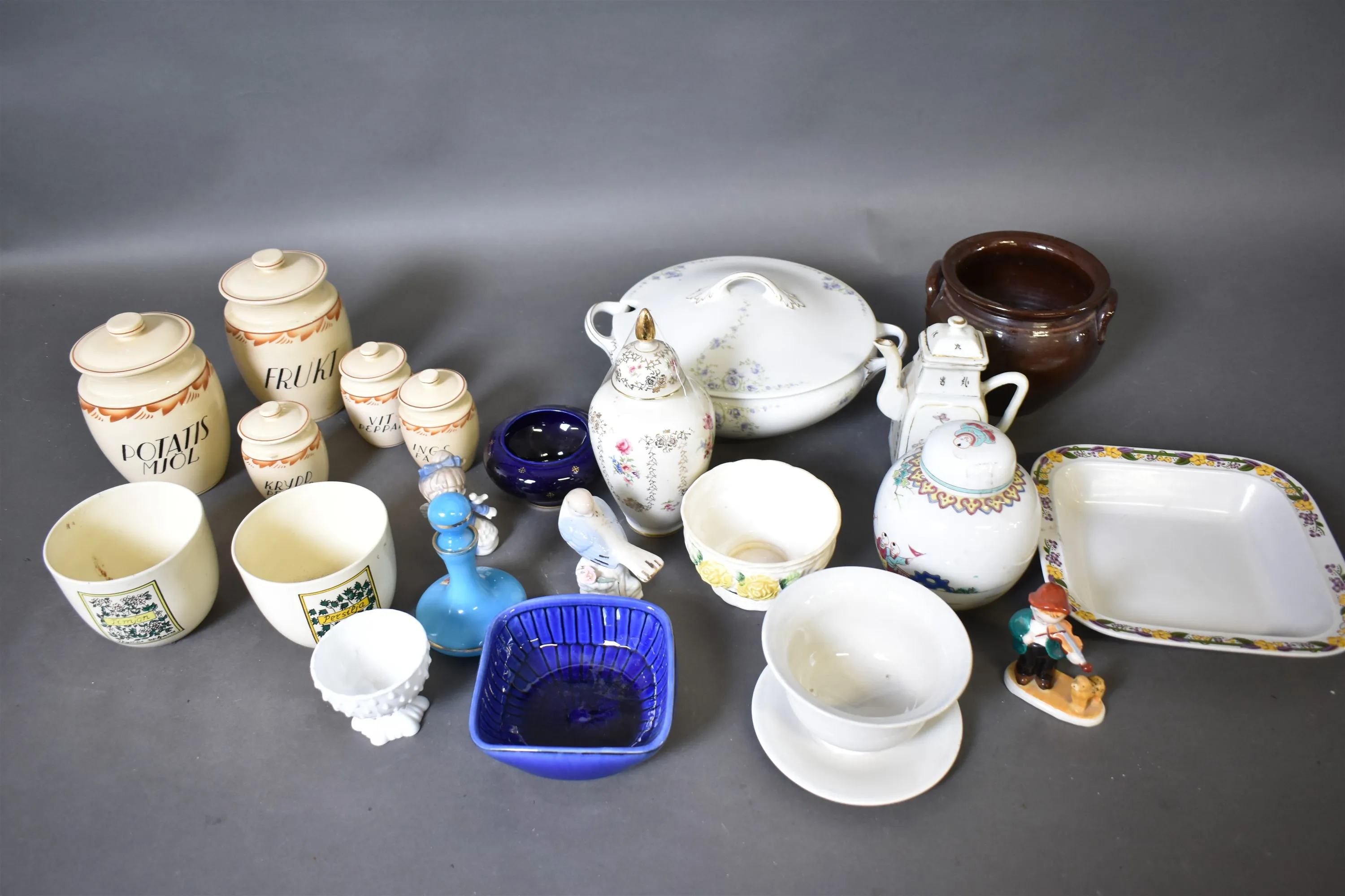 16075. Parti keramik, bl.a kryddburkar, terrin högsta 22 cm