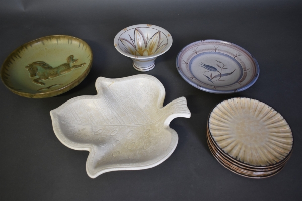 9091. Parti keramik bl.a Bo Fajans, Höganäs, Ekeby, Nylundfat lagat längsta 36 cm
