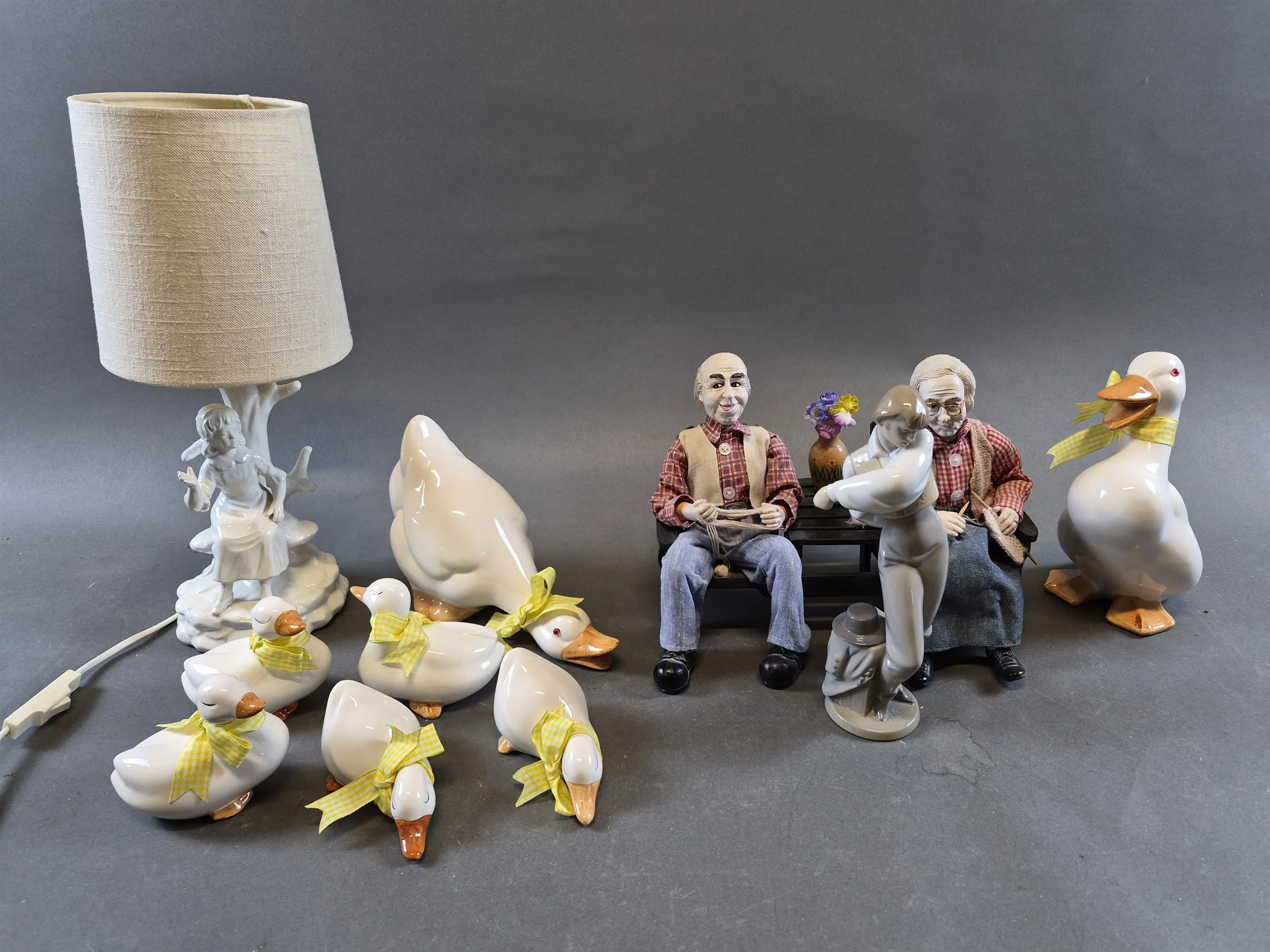19806. Parti keramik bl.a bordslampa & ankor högsta 40 cm