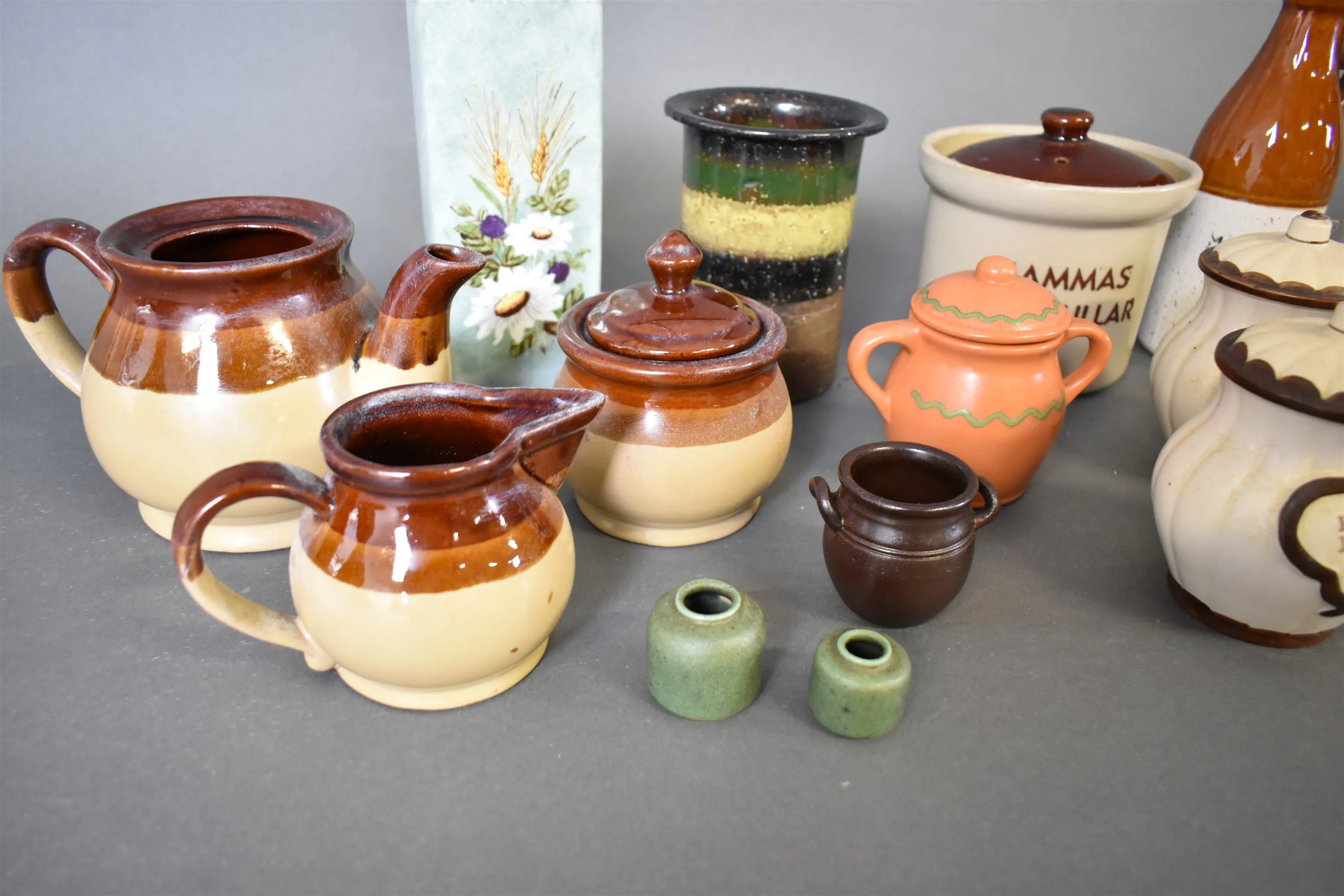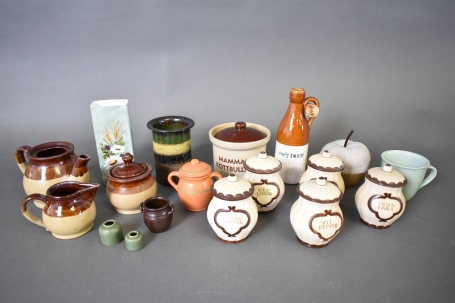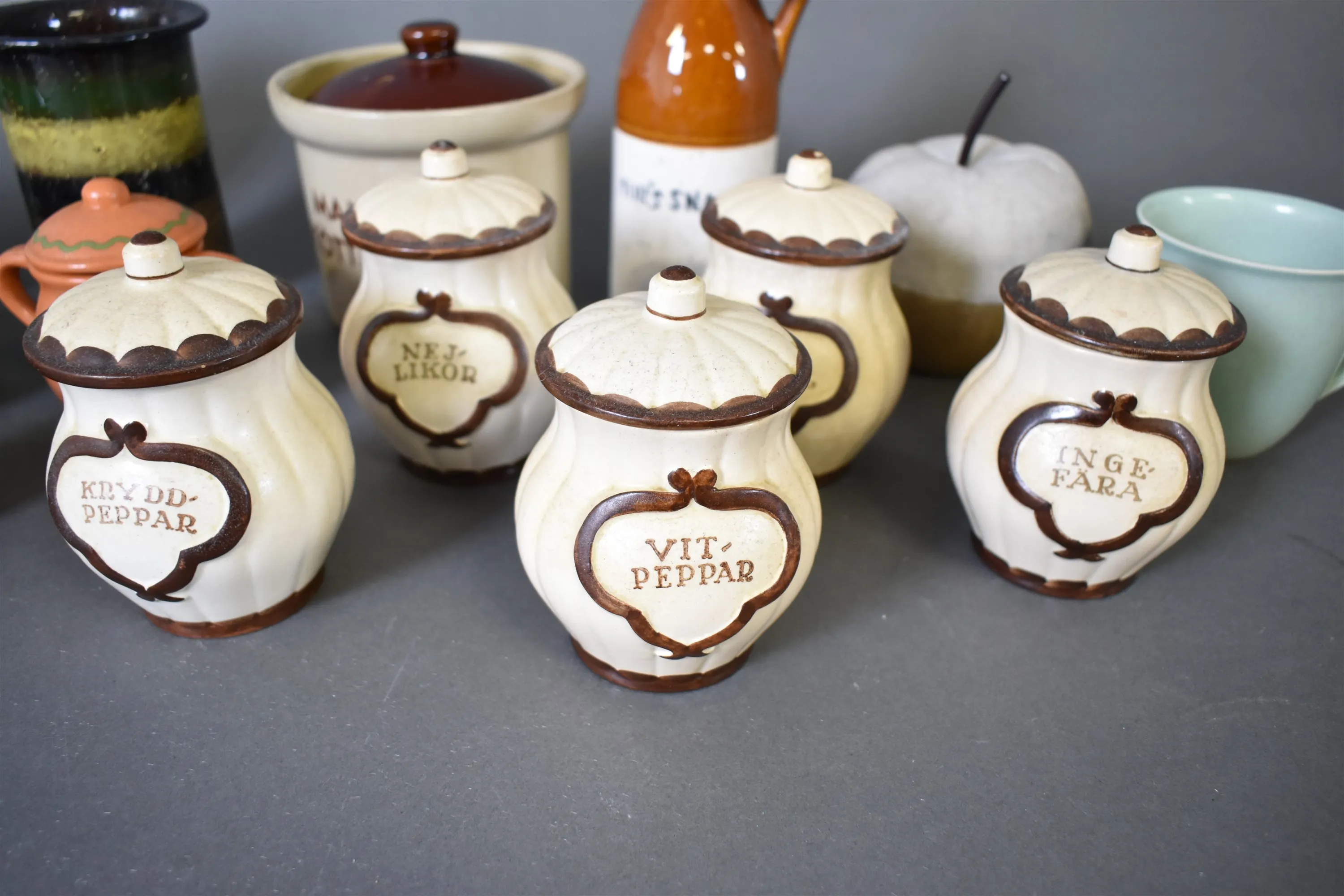 6900. Parti keramik bl.a kryddburkar Brun Pyro, högsta höjd 22 cm