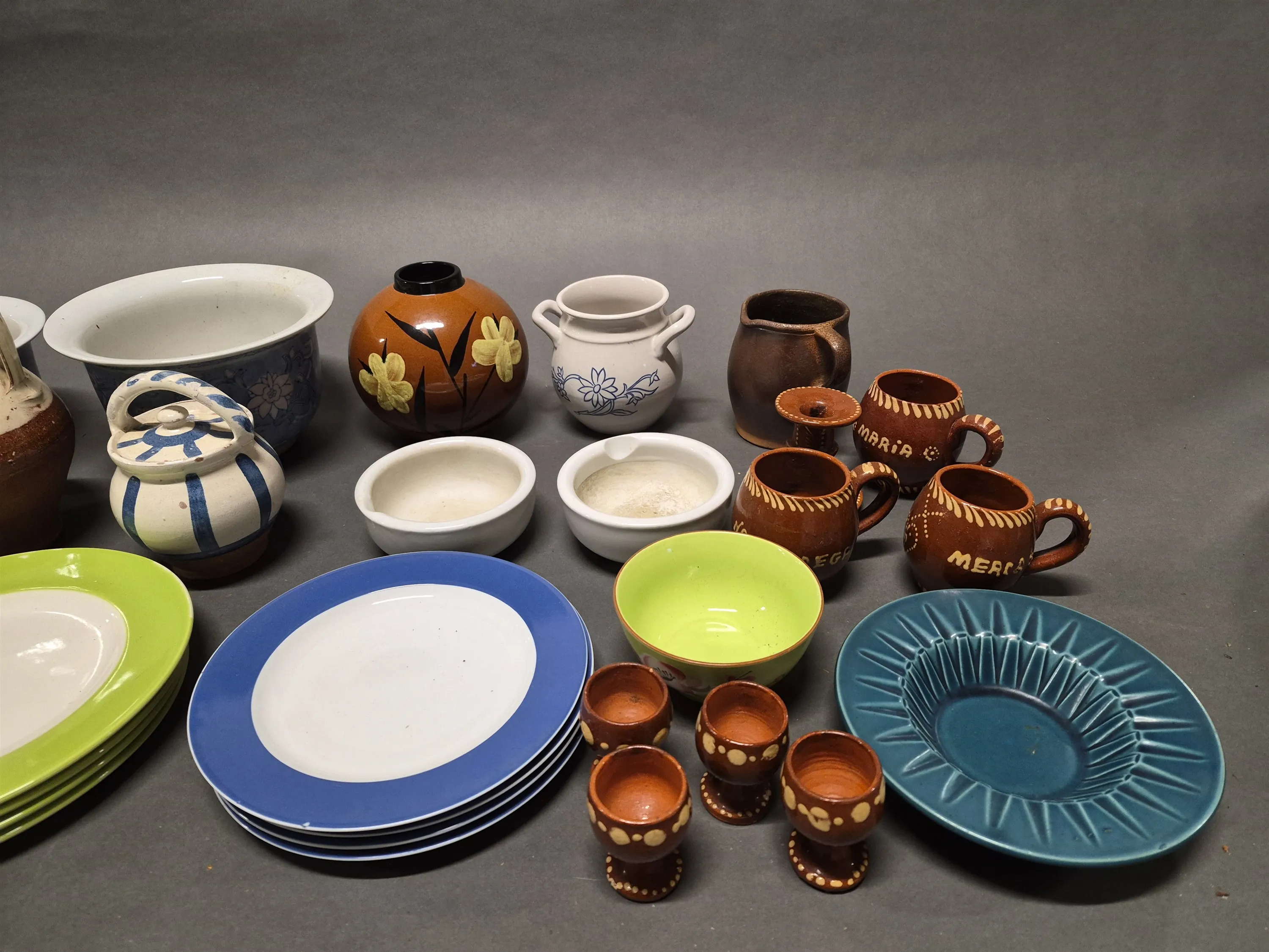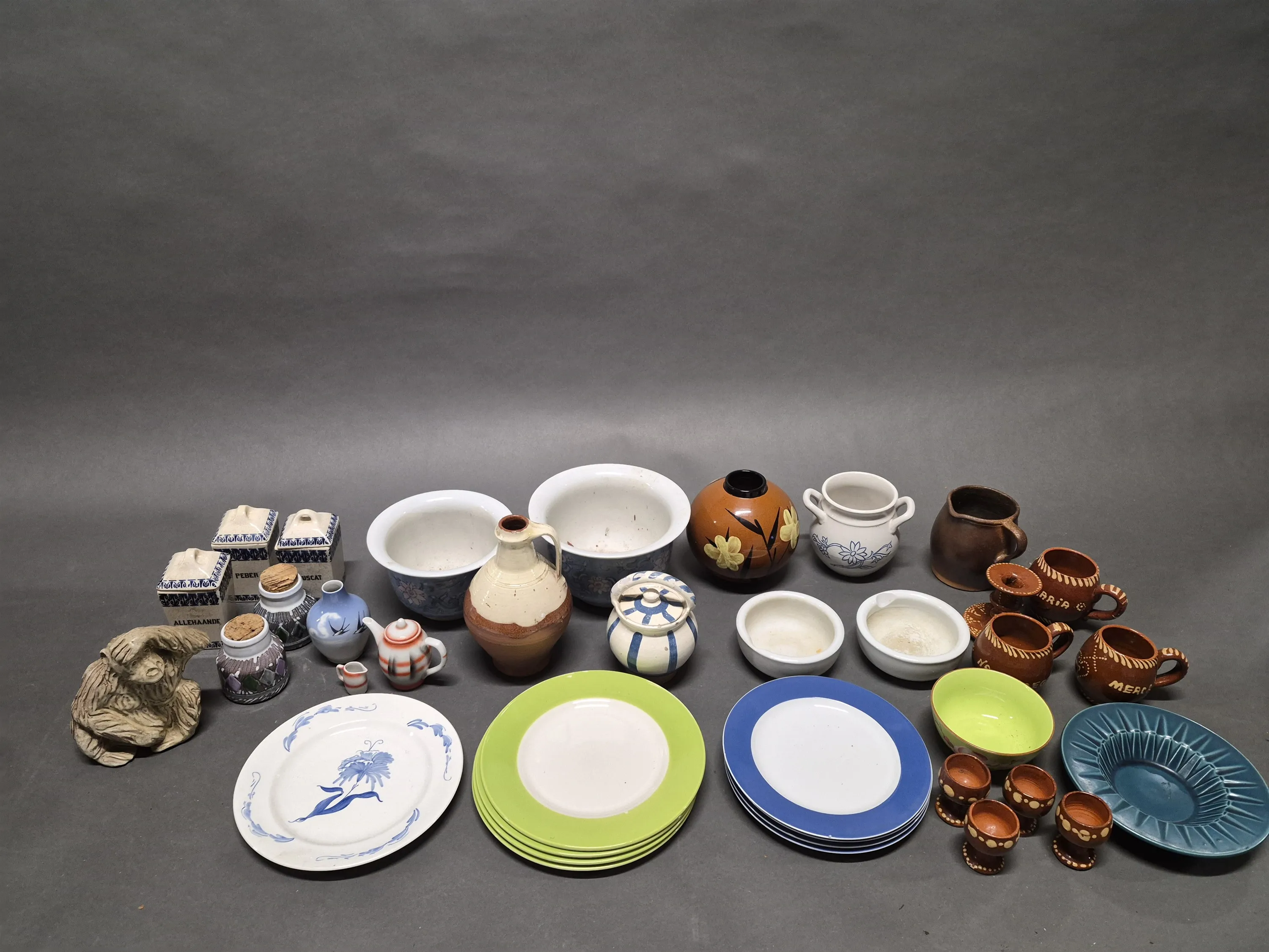 18044. Parti keramik bl.a Laholmsapa högsta 16 cm