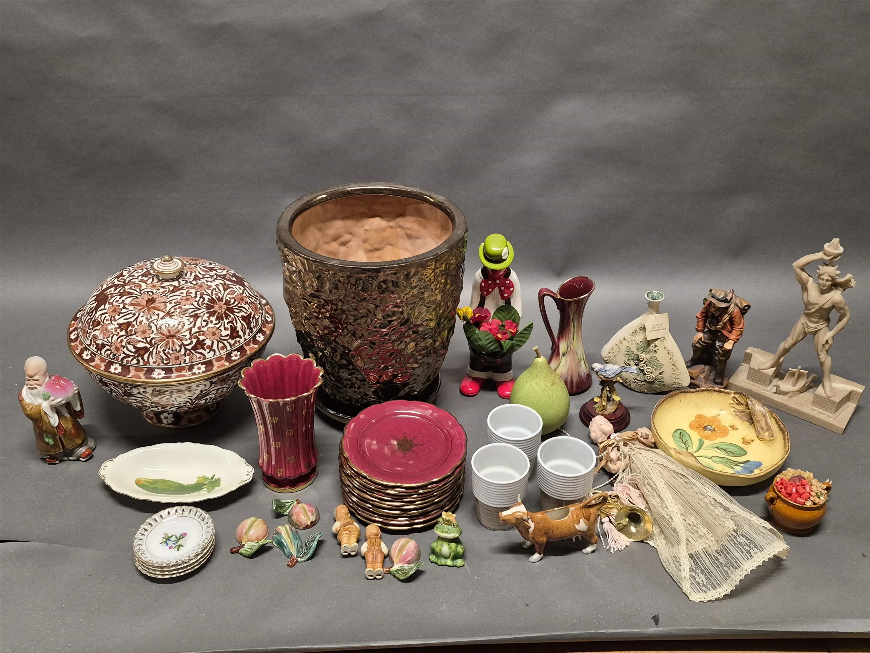 17813. Parti keramik bl.a ytterfoder & figuriner, clownen har nagg högsta 40 cm