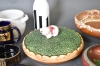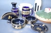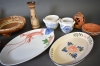 7556. Parti keramik bla kräftfat, krus och pajform, längsta mått 44 cm