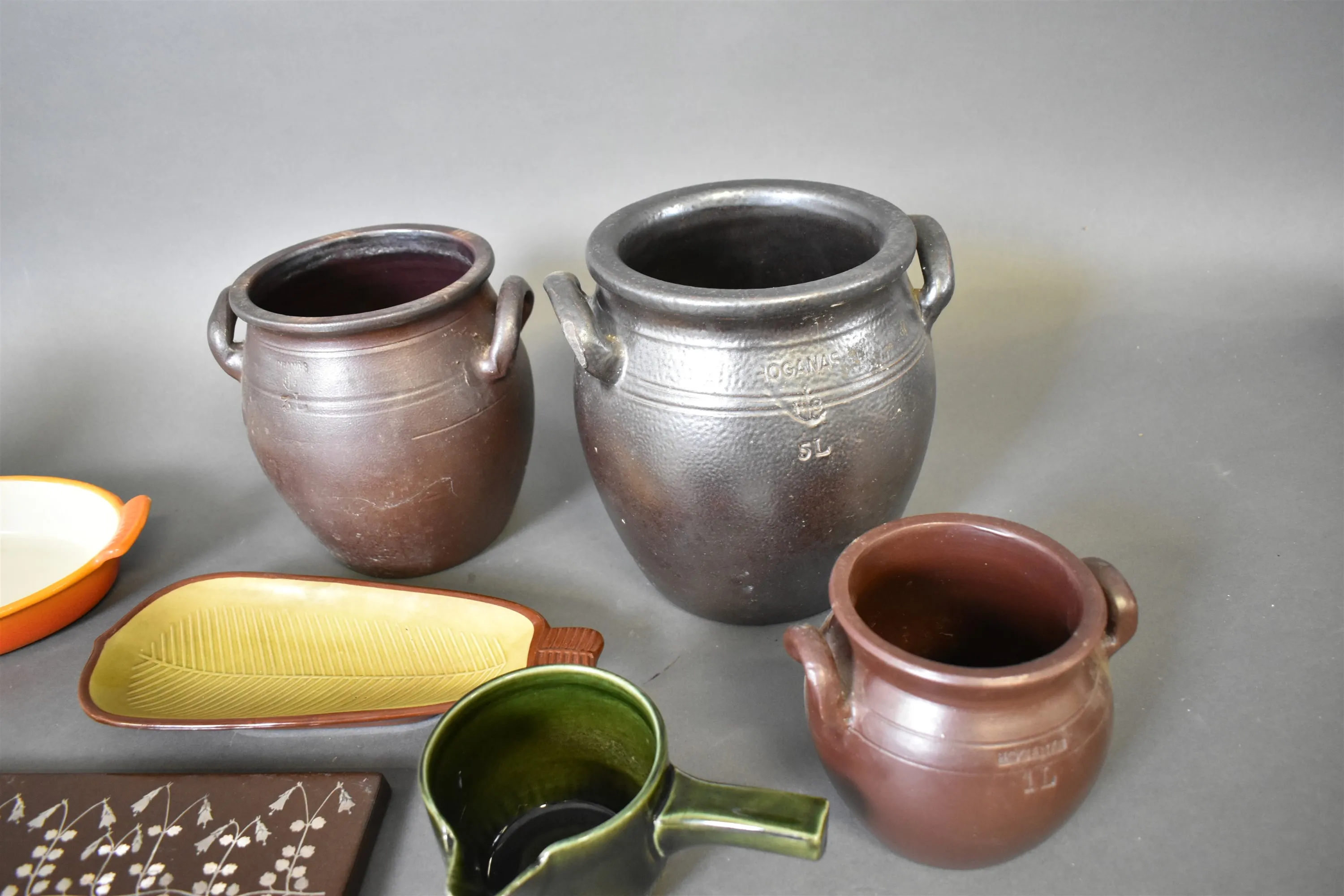 12956. Parti keramik bla krus Höganäs, högsta höjd 29 cm