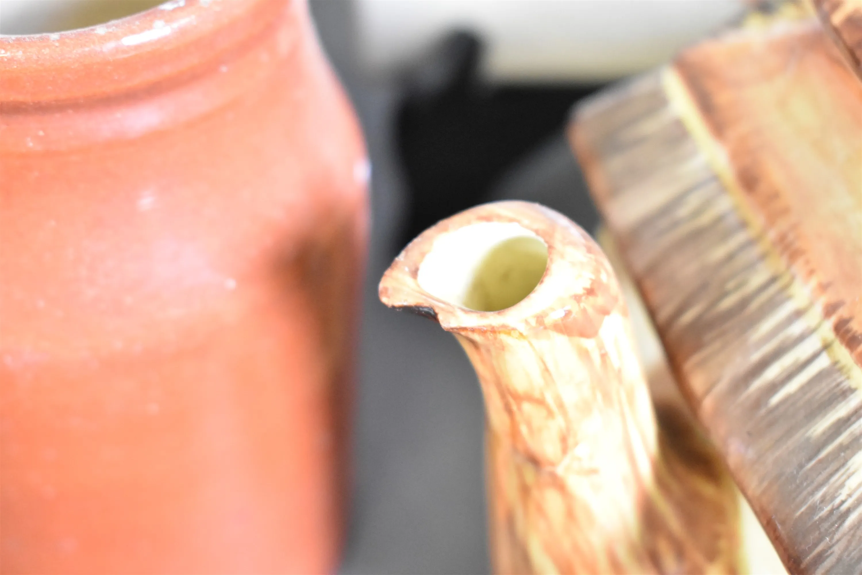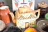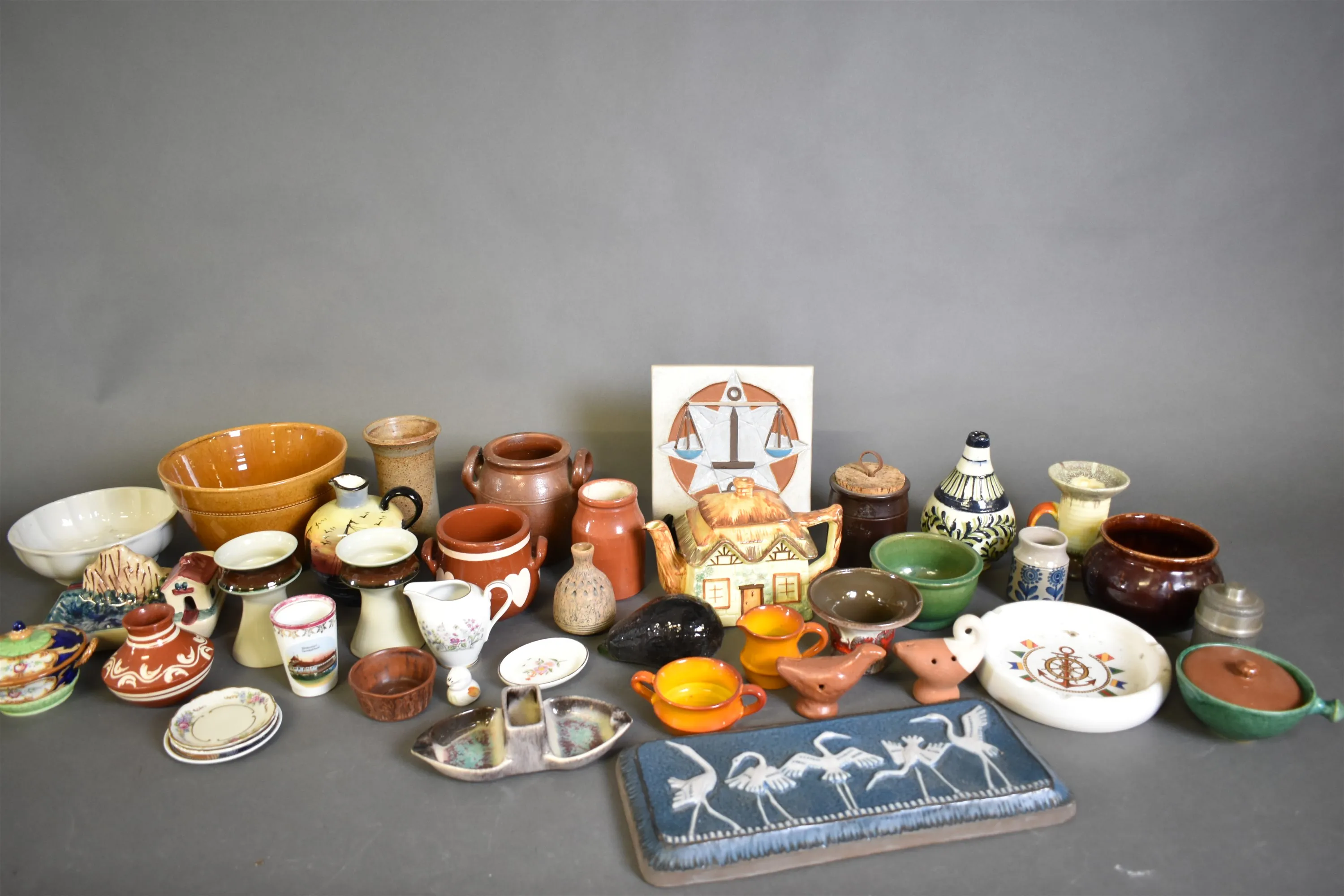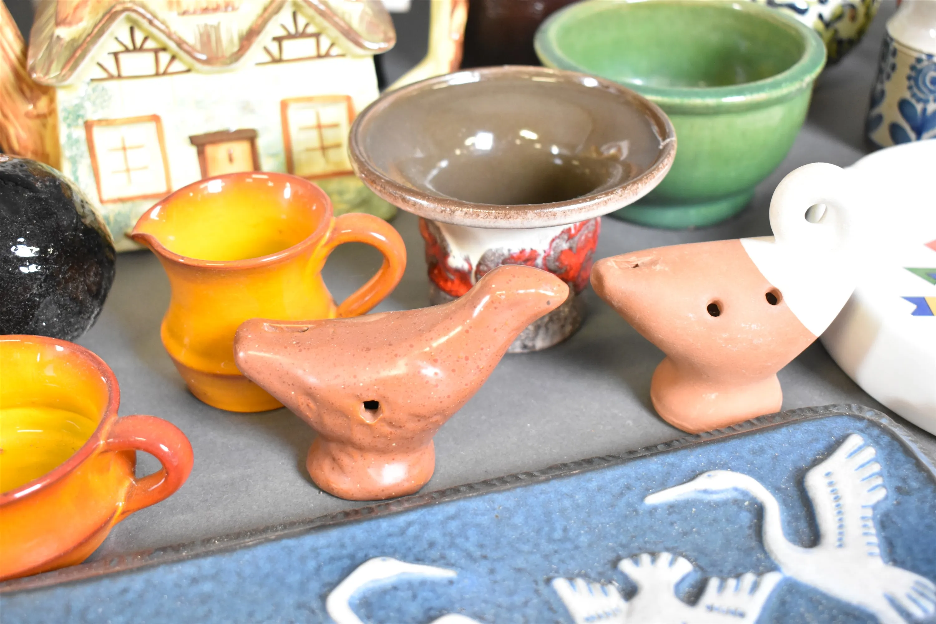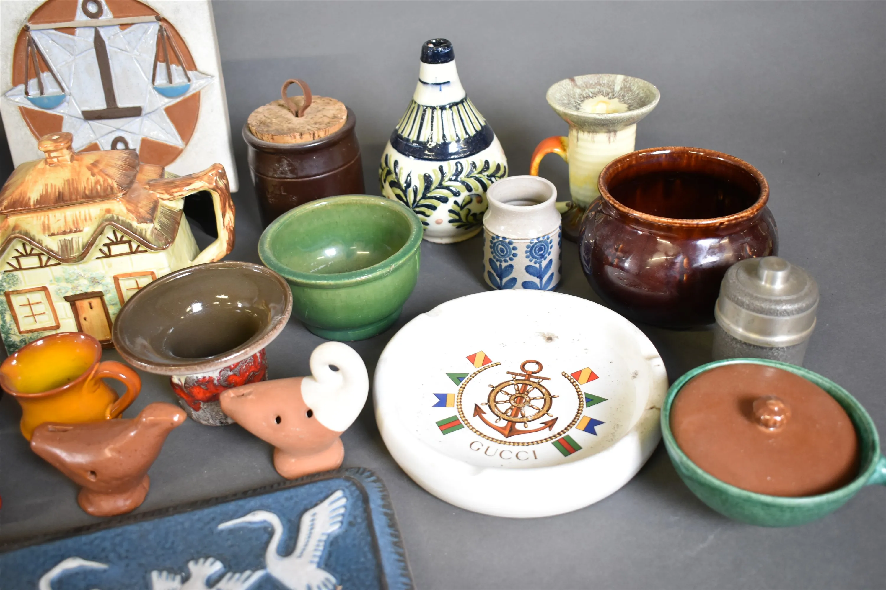 10576. Parti keramik bla retro, tekanna "hus" och keramiktavla JIE, högsta höjd på bild 22 cm, 2 lådor